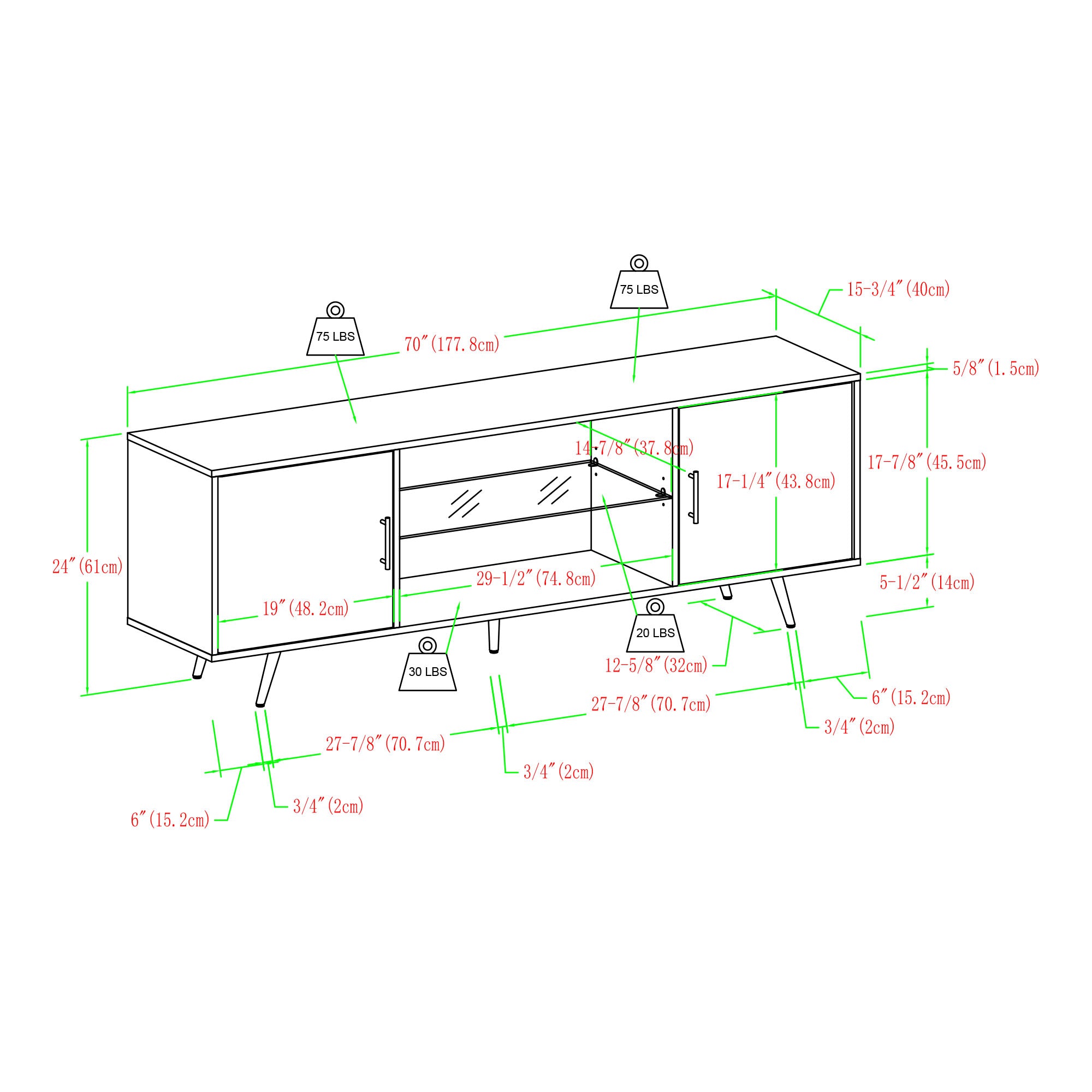 - Fits TVs up to 80 inches: Designed to support large flat-screen TVs while maintaining a balanced, mid-century profile