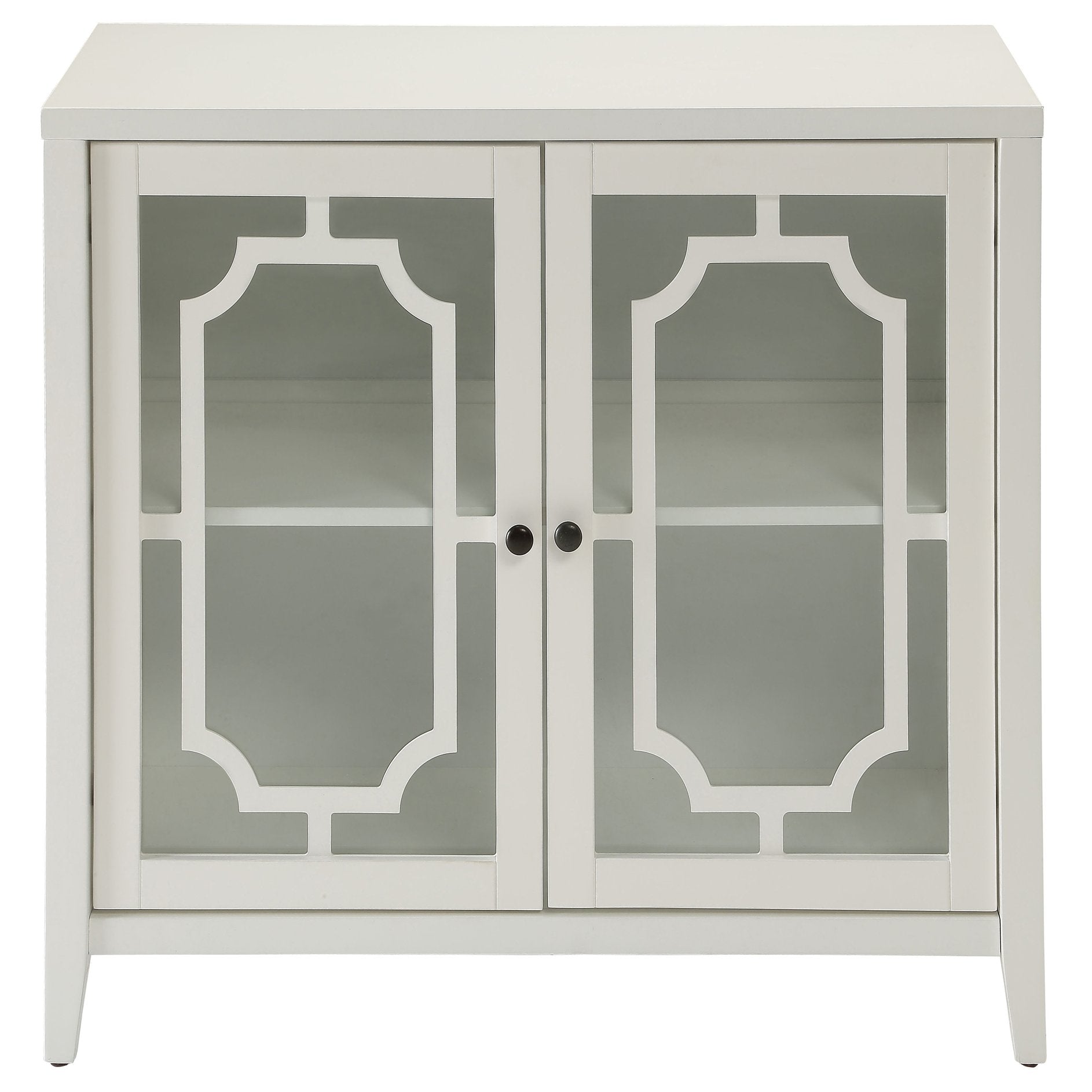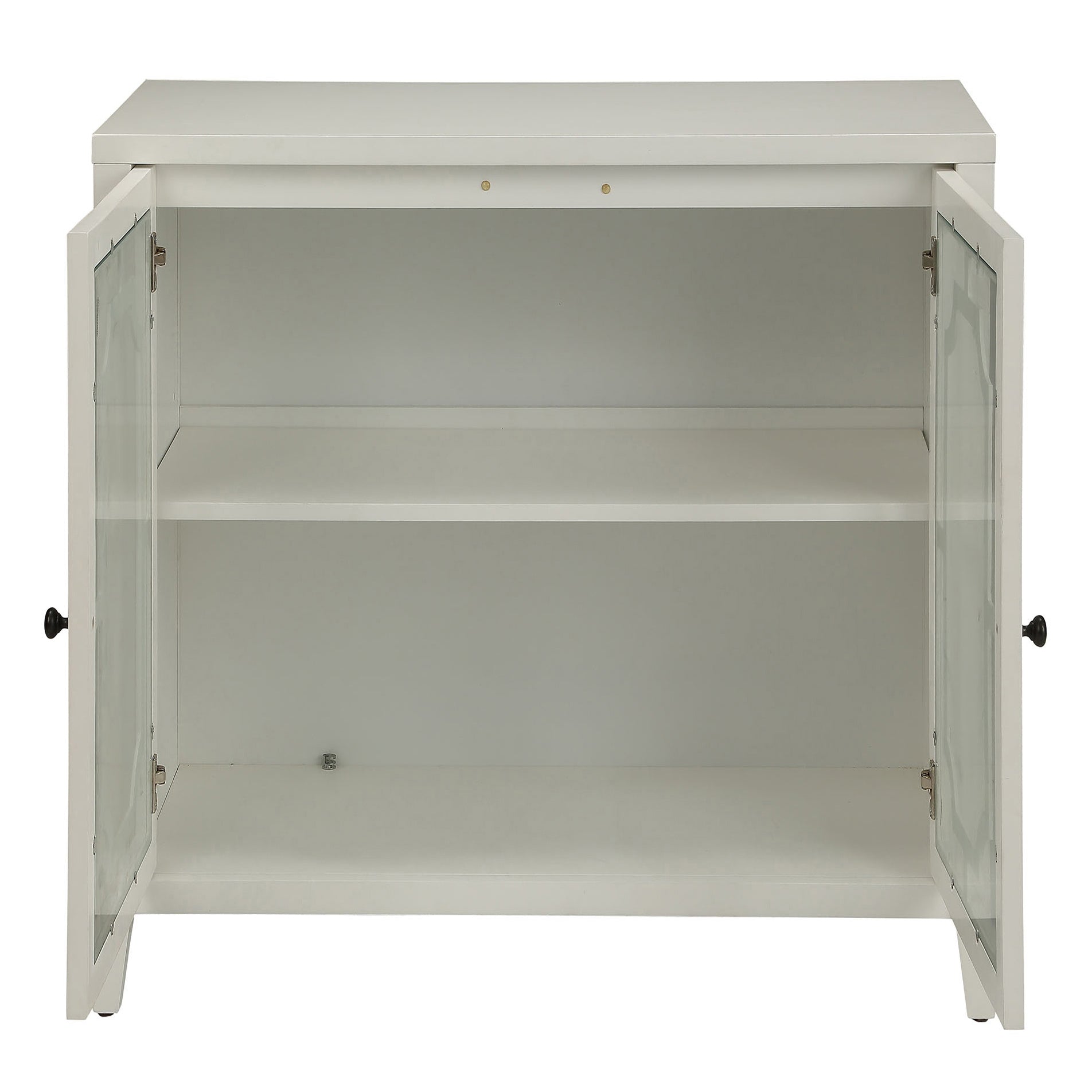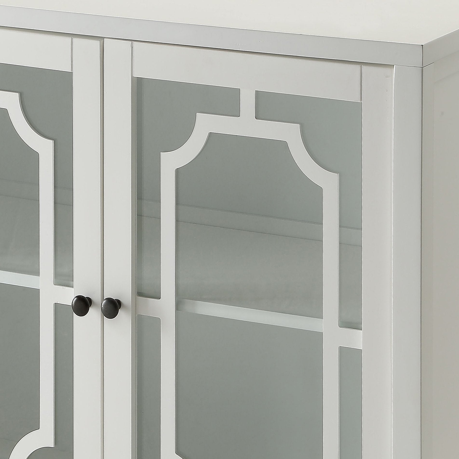 Elevate your entryway, living room, or hallway with this refined white console table, where classic charm meets practical storage. The elegant fretwork glass doors create a decorative focal point while protecting and displaying your favorite decor, and the clean white finish pairs seamlessly with a range of interiors from coastal to contemporary.