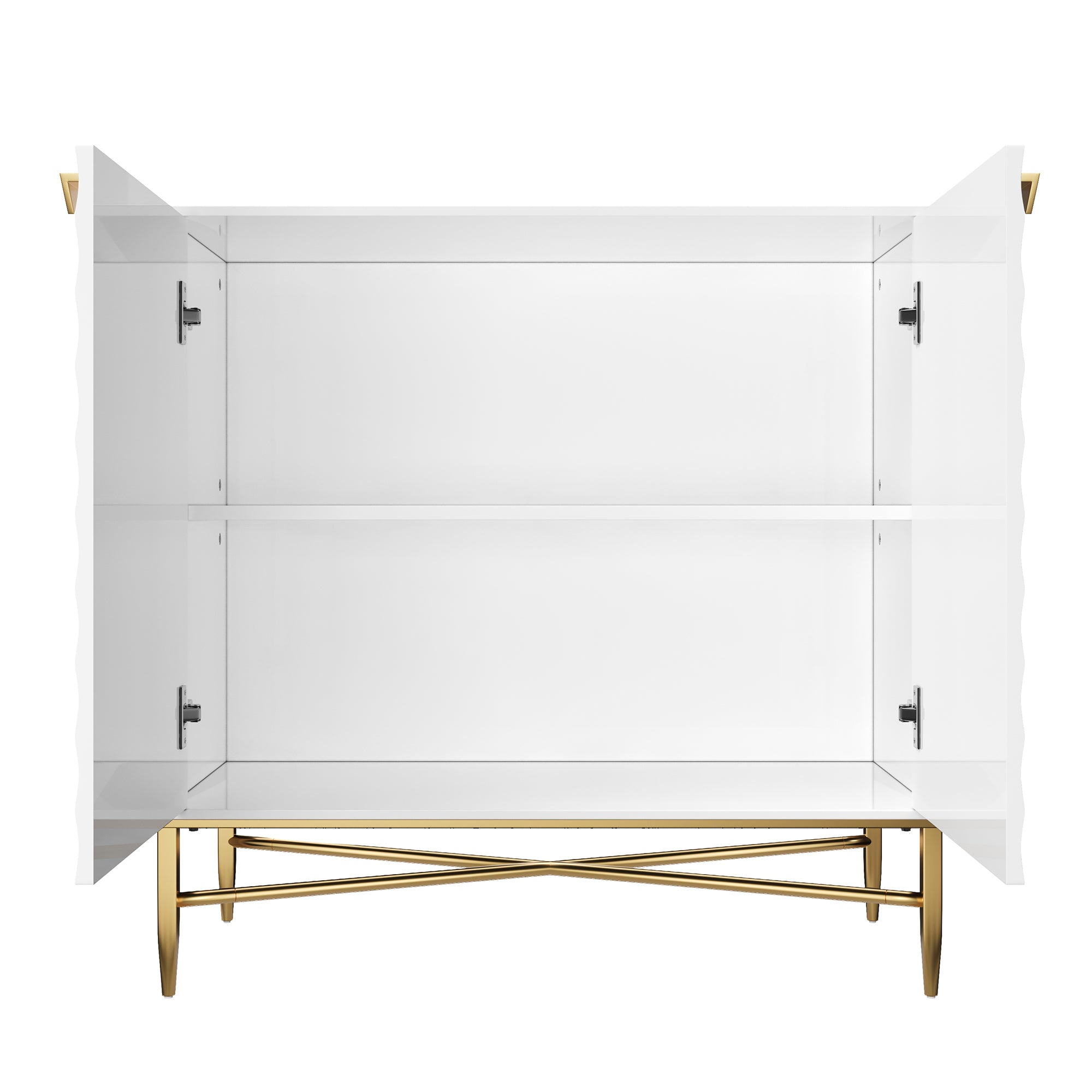 Elevate your space with this sleek, contemporary two-door accent cabinet — a compact storage solution that blends modern design with practical functionality. Its smooth white finish and subtle raised diamond pattern create visual interest while the tapered metal feet add an airy, sophisticated touch that complements living rooms, bedrooms, or office environments.