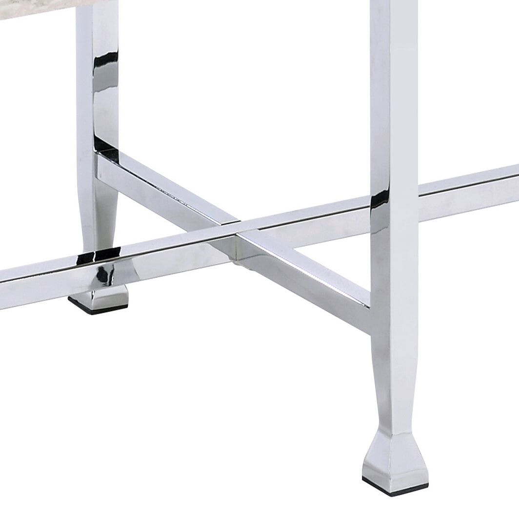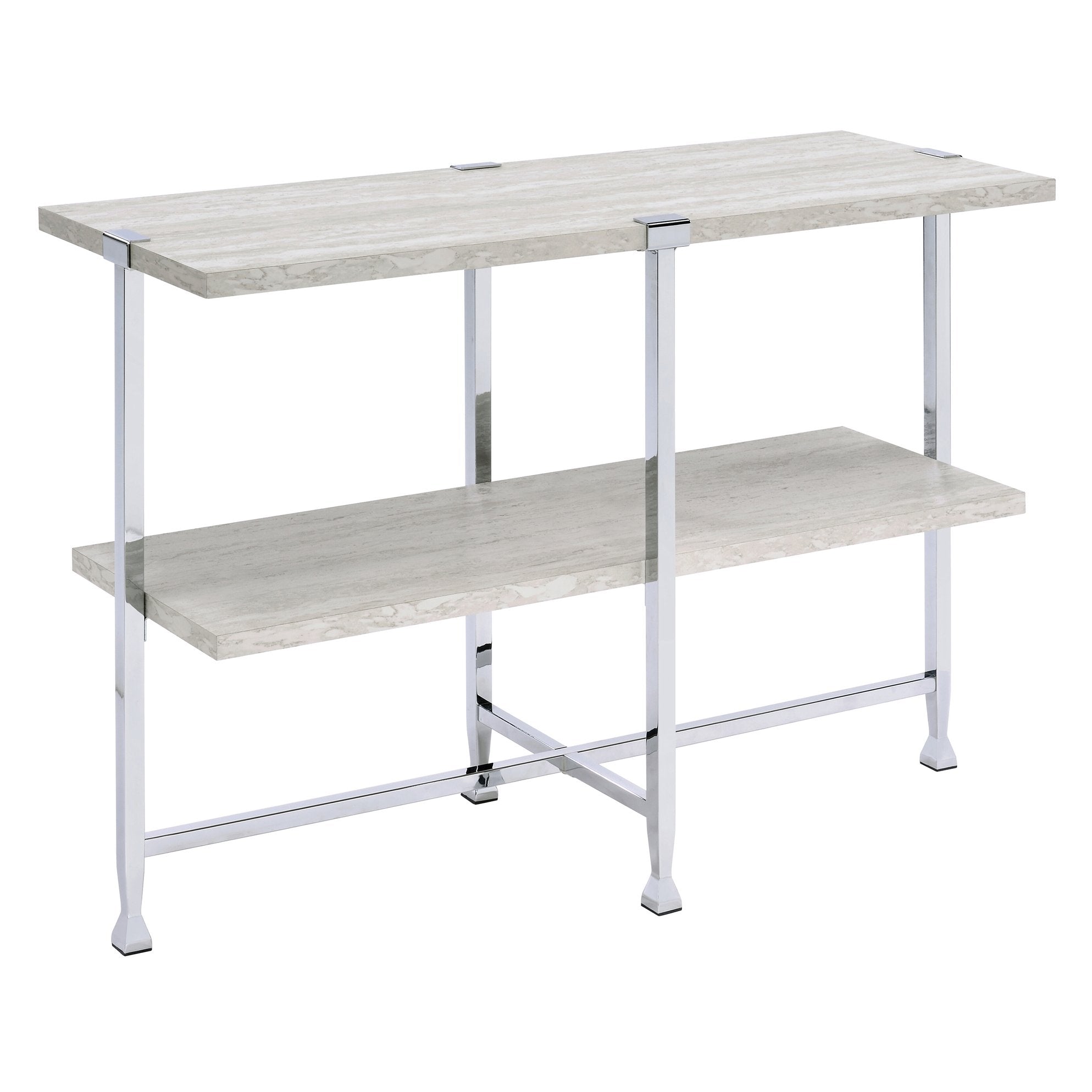 Elevate your entryway, behind-the-sofa vignette, or hallway with this modern White Oak and Chrome sofa table. Thoughtfully designed for everyday use, it combines a warm wood-look surface with industrial chrome accents to deliver both function and style. The open shelf keeps essentials handy while the sturdy metal frame ensures long-lasting stability — a versatile piece that complements contemporary, mid-century, and transitional interiors.