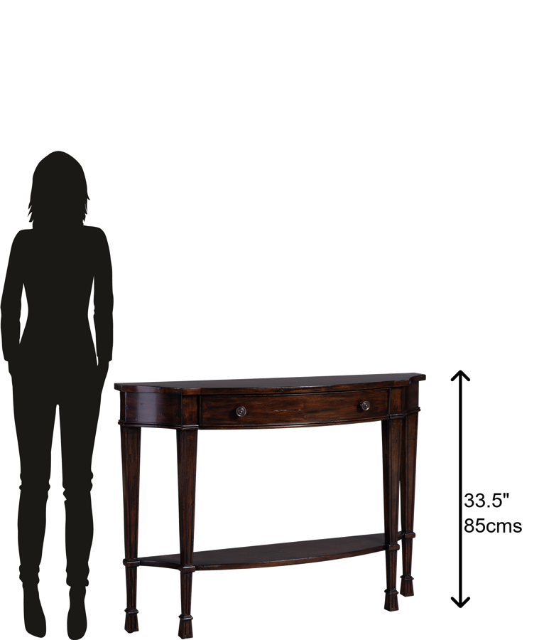 - Breakfront curved console table with center drawer.