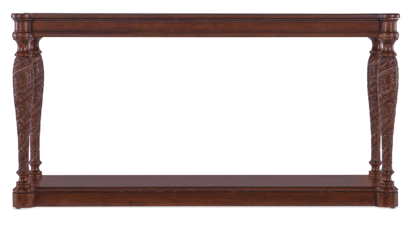 Evoking the refined charm of British and Dutch Colonial eras with a touch of West Indies craftsmanship, this console table blends ornate detailing and warm cherry tones for a versatile focal point in entryways, living rooms, or behind sofas. The shaped legs with carved leaf motifs and the rich Maraschino Cherry finish create a timeless, elegant piece that’s finished on all sides so it can be placed anywhere in the room.