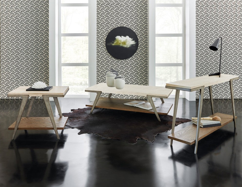 Elevate your entryway or living space with the Commerce & Market Boomerang Console Table — a refined blend of modern materials and timeless surfaces. This mixed-media piece pairs a cream travertine marble top with a warm oak-veneer shelf and a sturdy gray metal frame, delivering an eclectic yet cohesive look that suits contemporary, transitional, and casual interiors. Thoughtful distressing and subtle textural details give the table handcrafted character while the open form keeps the silhouette light and versatile.