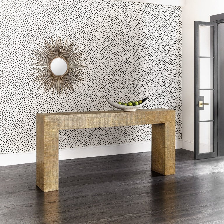 Bring a touch of serene sophistication to your living space with the Kanchan Sofa Console. Crafted from solid mango wood and finished with a tactile gold metal cladding, this console balances organic warmth and refined metallic detail for a transitional look that complements modern, eclectic, and classic interiors alike.