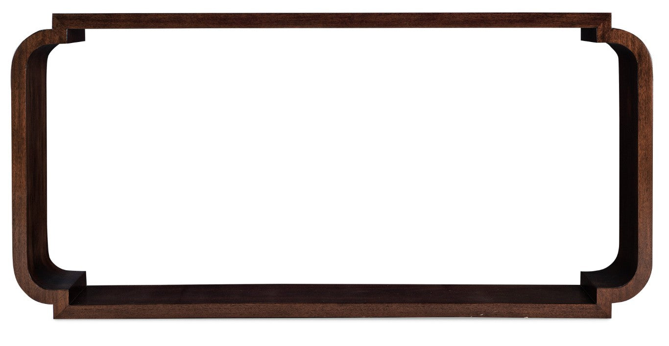 Elevate a hallway, entryway, or behind-sofa display with the Melange Kingston Console Table — a refined, transitional piece that pairs airy visual appeal with practical surface and display space. Crafted in dark swirl mahogany veneers, its slim profile and graceful curves create a light, sophisticated presence that complements both modern and classic interiors.