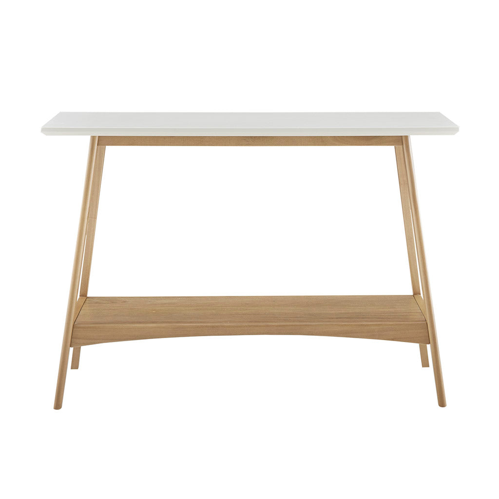 Elevate your living space with the Madison Park Parker Console, a mid-century inspired wooden console that blends clean lines and functional storage for a refined, contemporary look. Its two-tone finish creates a striking contrast that complements a variety of decor styles, while the sturdy solid wood frame and lower shelf provide both durability and practical organization for entryways, behind sofas, or hallways.