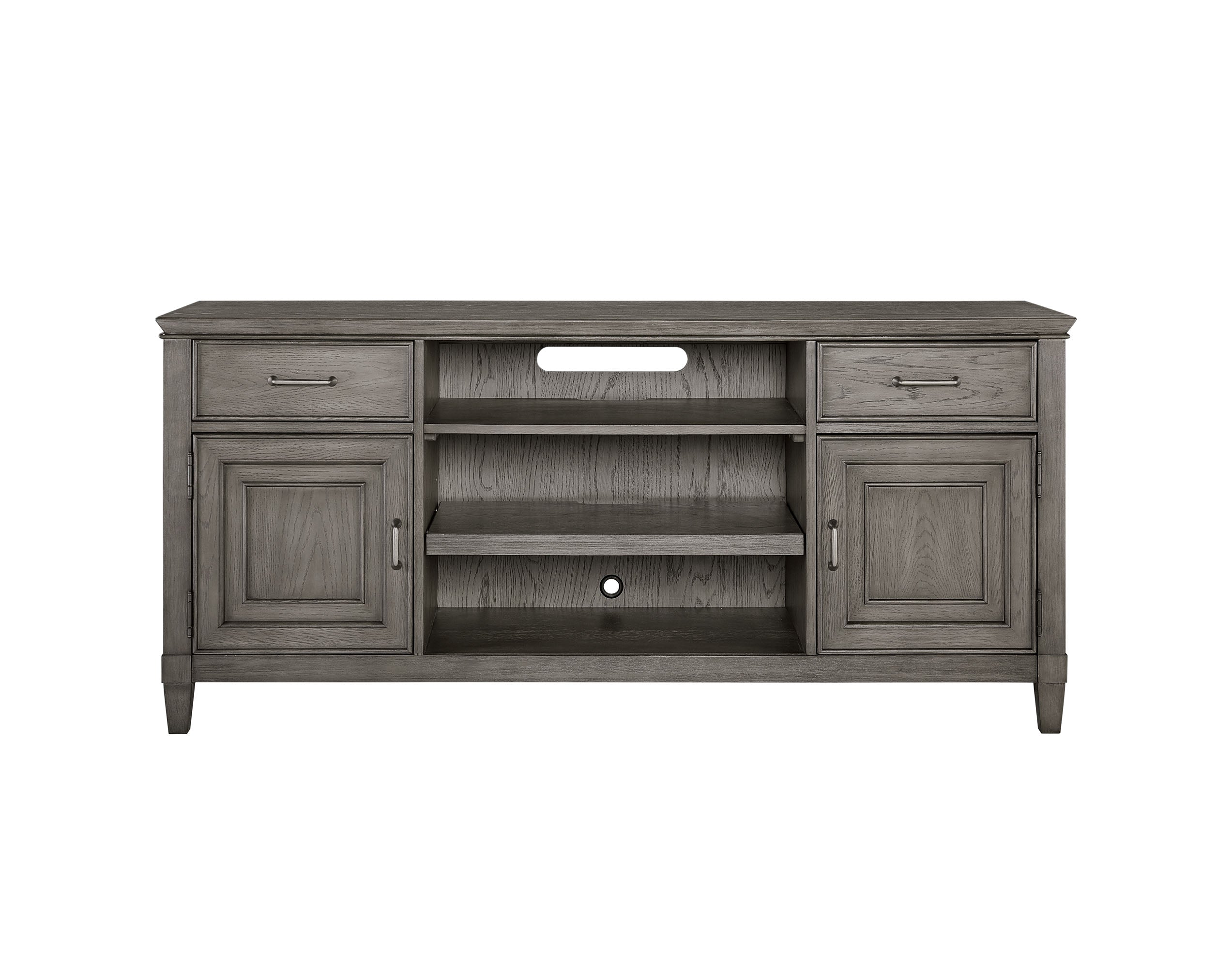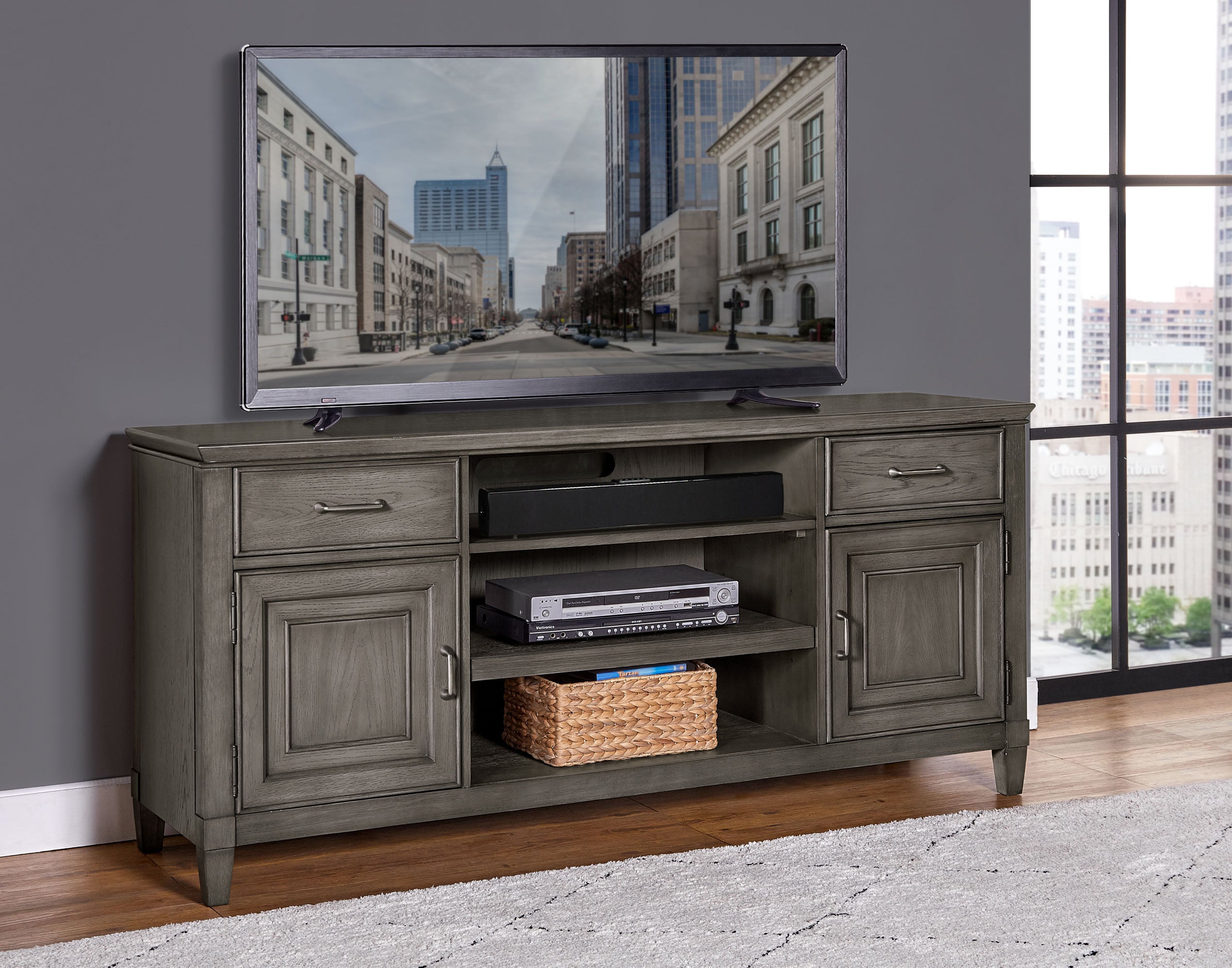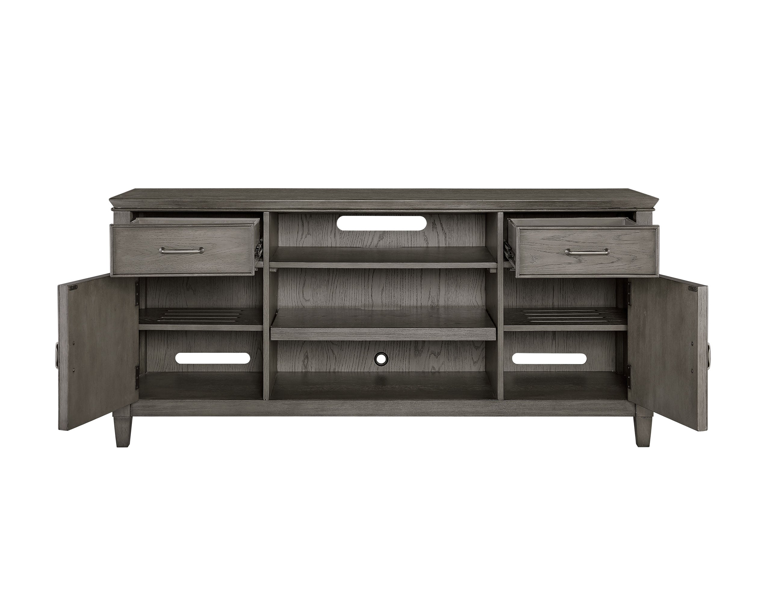 - Storage Options: Includes wood shelves behind two stylish wood doors