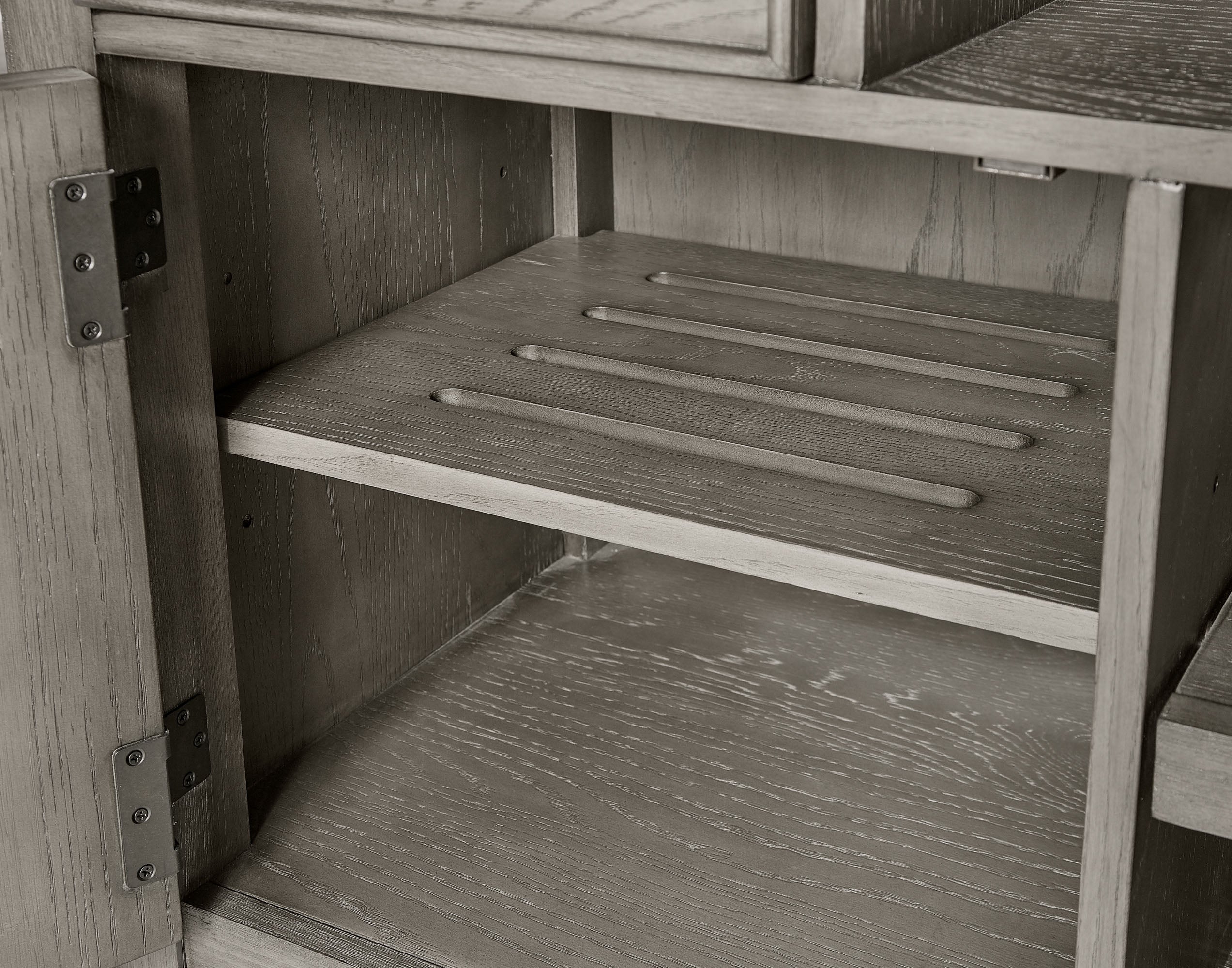 - Bottom Shelves: Two shelves measuring 27.5" W x 17.25" D x 7" H each, with adjustable height options