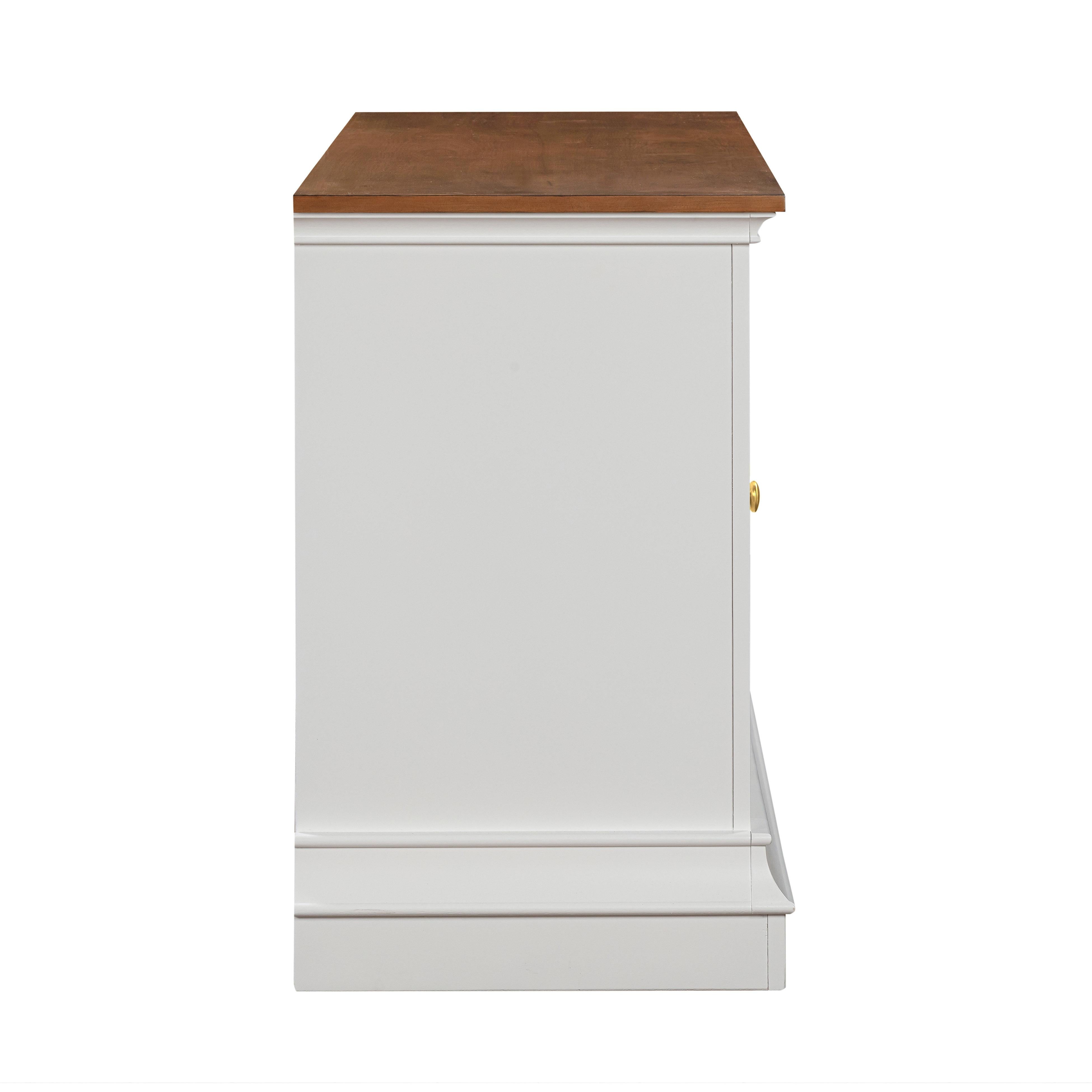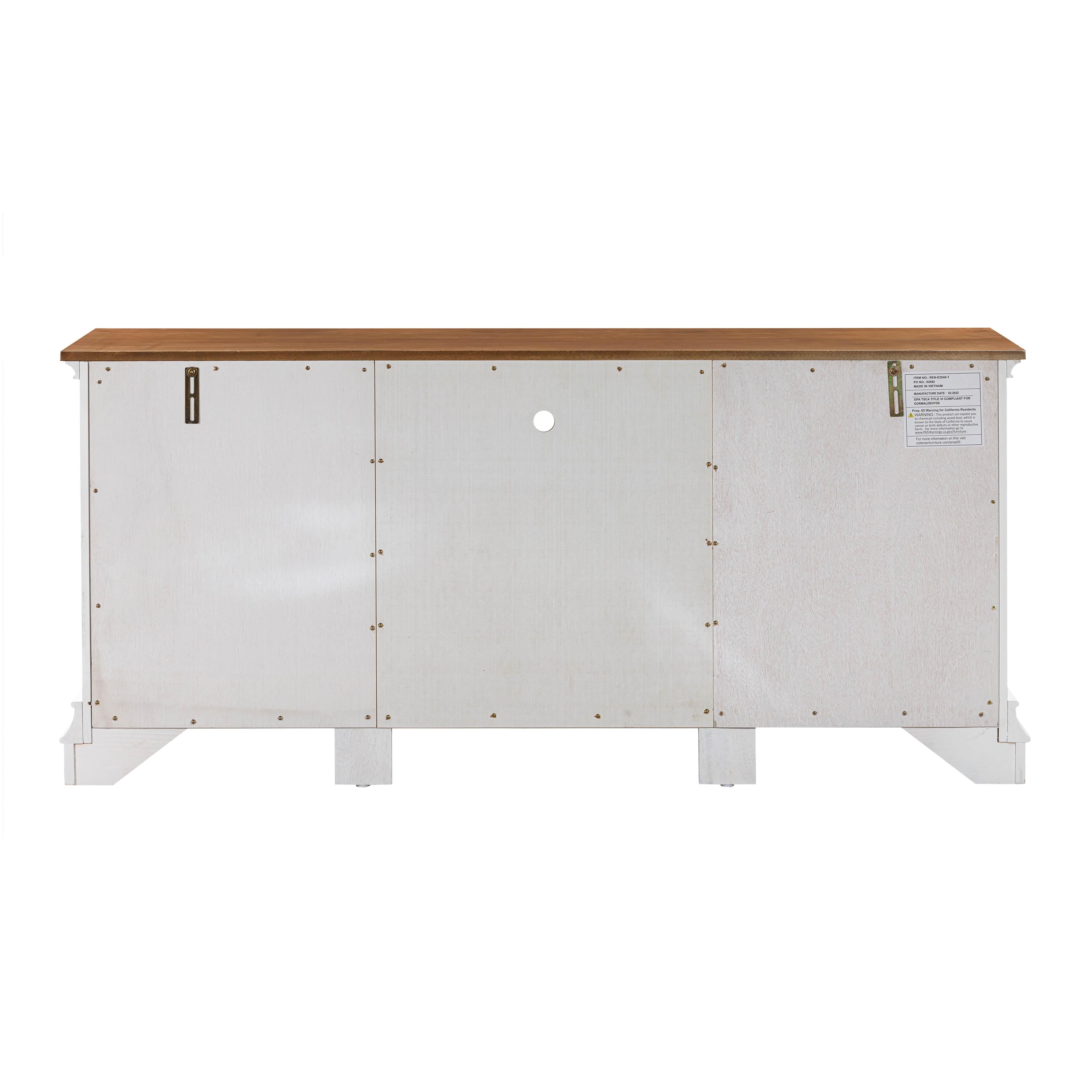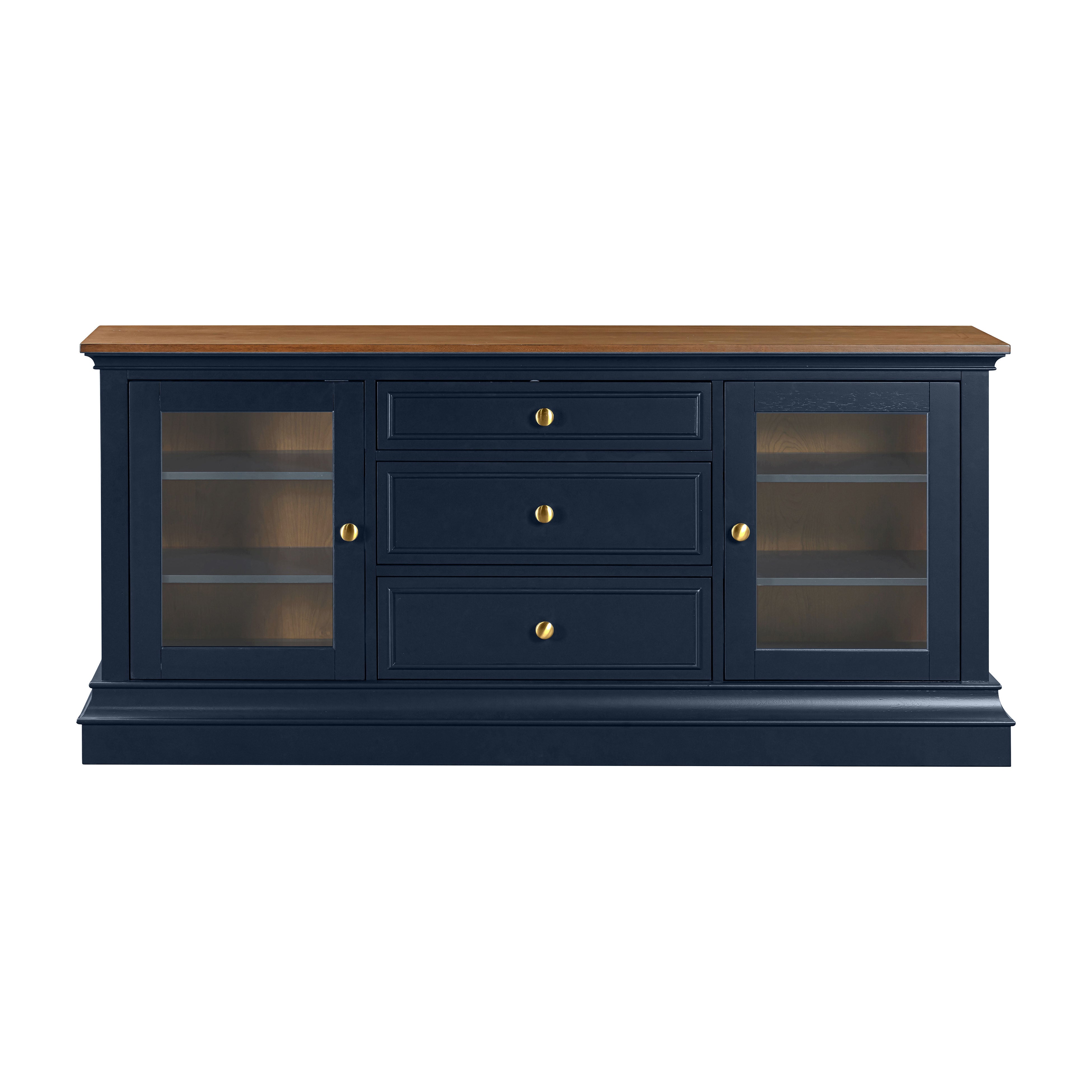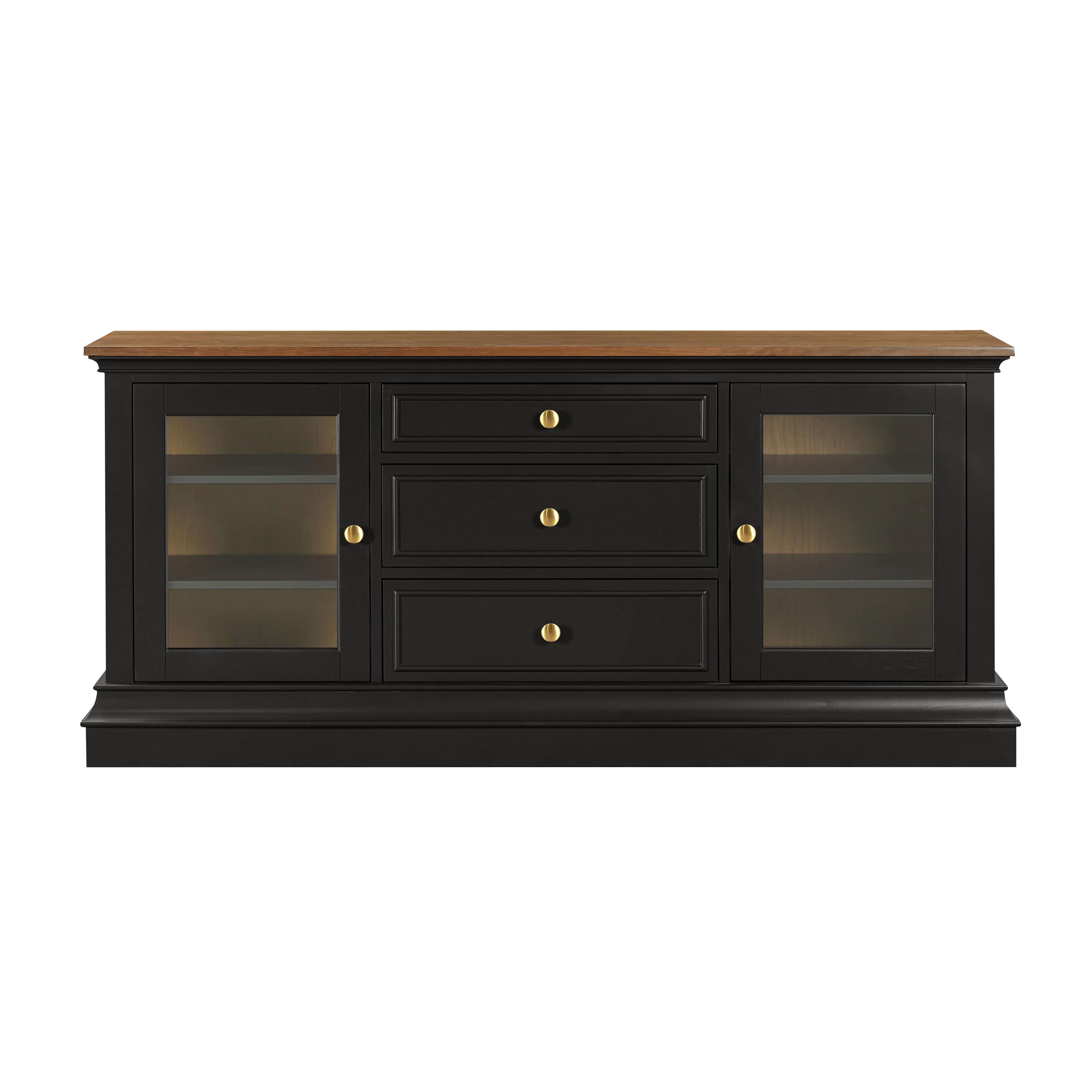 - Feature 7: Drop-front center drawer with cutout for media components and cord management