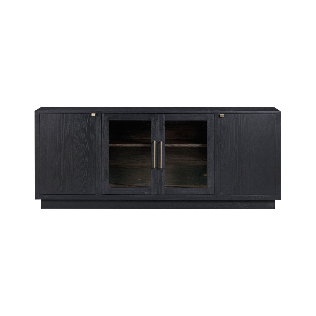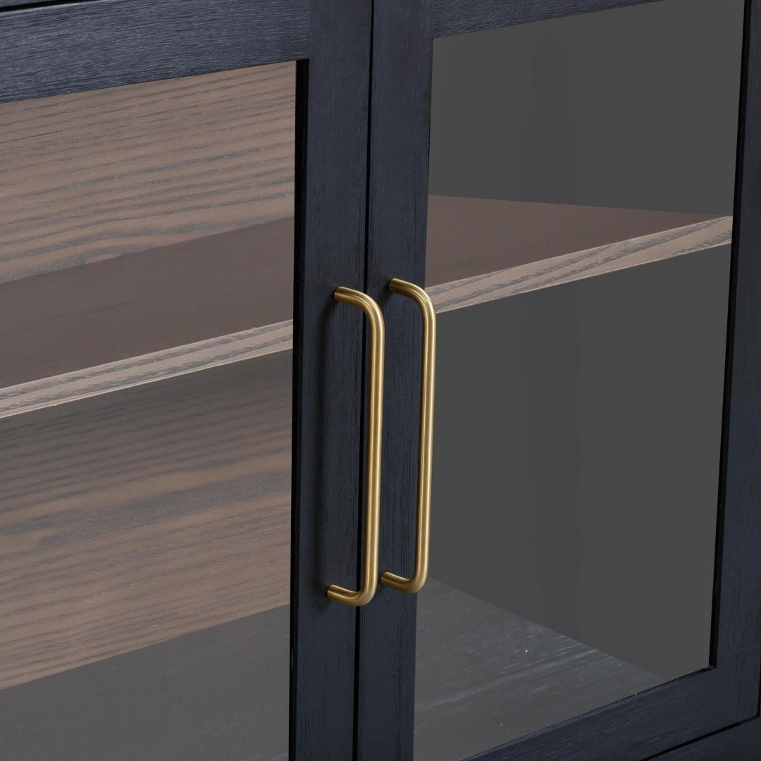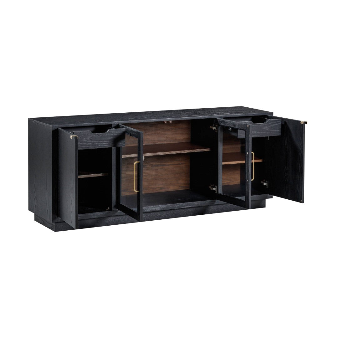 - Media-Ready: Cord management cutouts behind the glass doors keep cables tidy and devices accessible for use as a TV/media console.