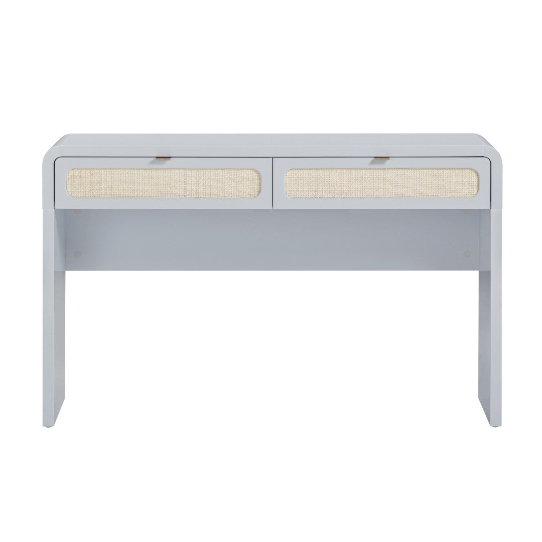 Bring a breezy, vacation-at-home vibe to your space with this handwoven rattan console desk. The Patty design pairs softly rounded silhouettes and pastel tones with durable construction and thoughtful details ” perfect as a compact home office desk, entryway console, or stylish accent in a bedroom or guest room.