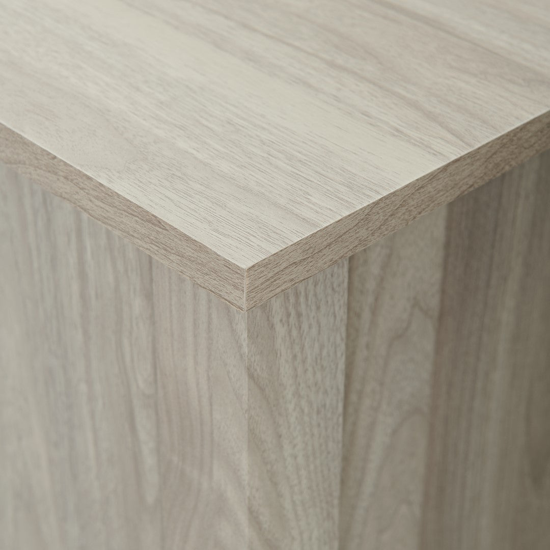 - Made of high-grade MDF, durable laminate, clear tempered glass, and metal