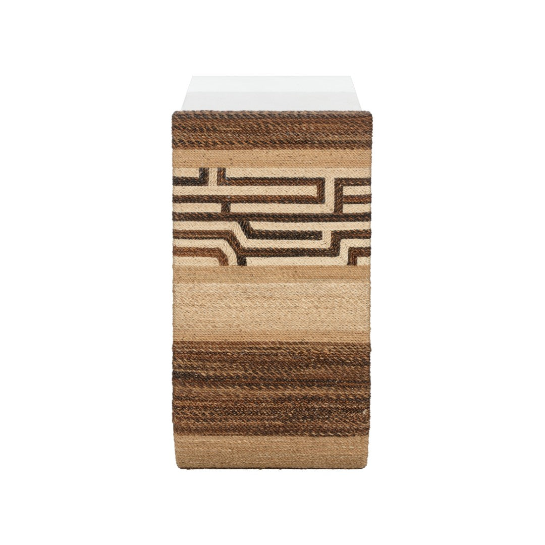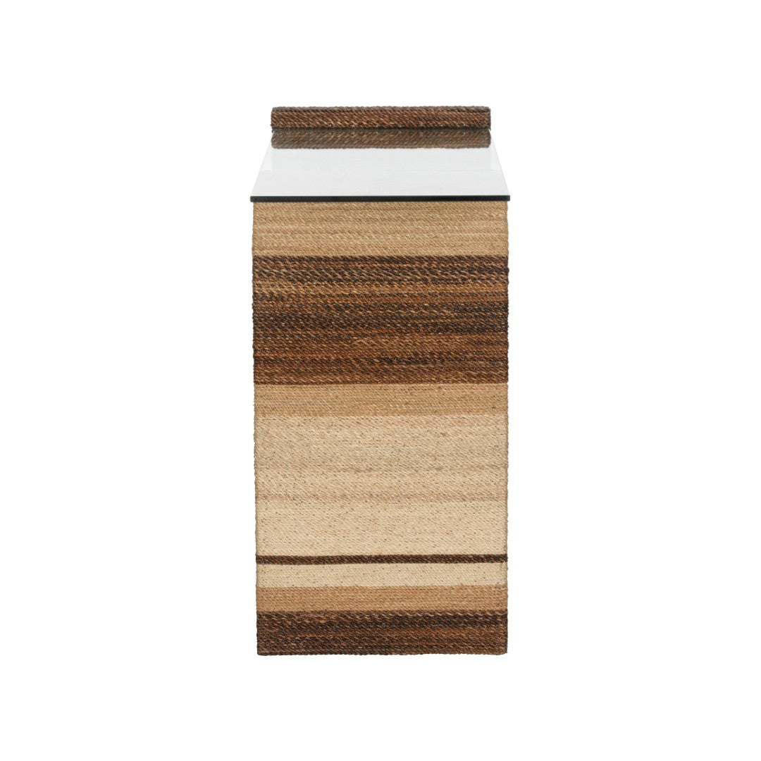 Introduce organic elegance to your entryway, hallway, or dining space with the Calusa Curve Console Table — a sculptural piece that combines natural materials and modern design. Its wrapped abaca rope base creates a warm, textured silhouette while the suspended tempered glass top provides a light, airy surface that showcases the craftsmanship and patterning of the dyed rope. Ideal for styling with decorative accents, a mirror, or everyday essentials, this console balances artistic form with functional presence.