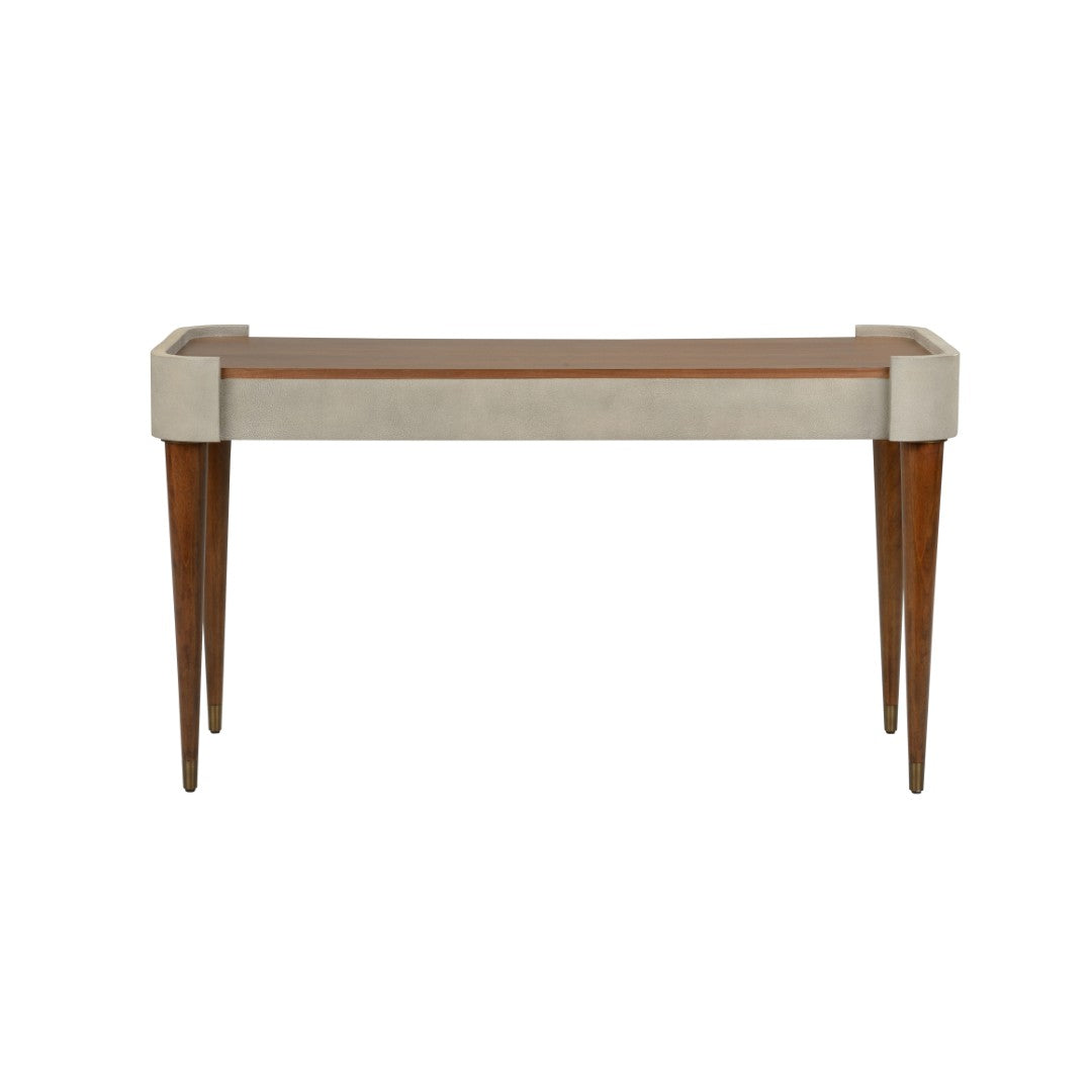 - Materials: Rich walnut top contrasted with a creamy gray shagreen-wrapped frame for a sophisticated mix of warm wood grain and textured finish.