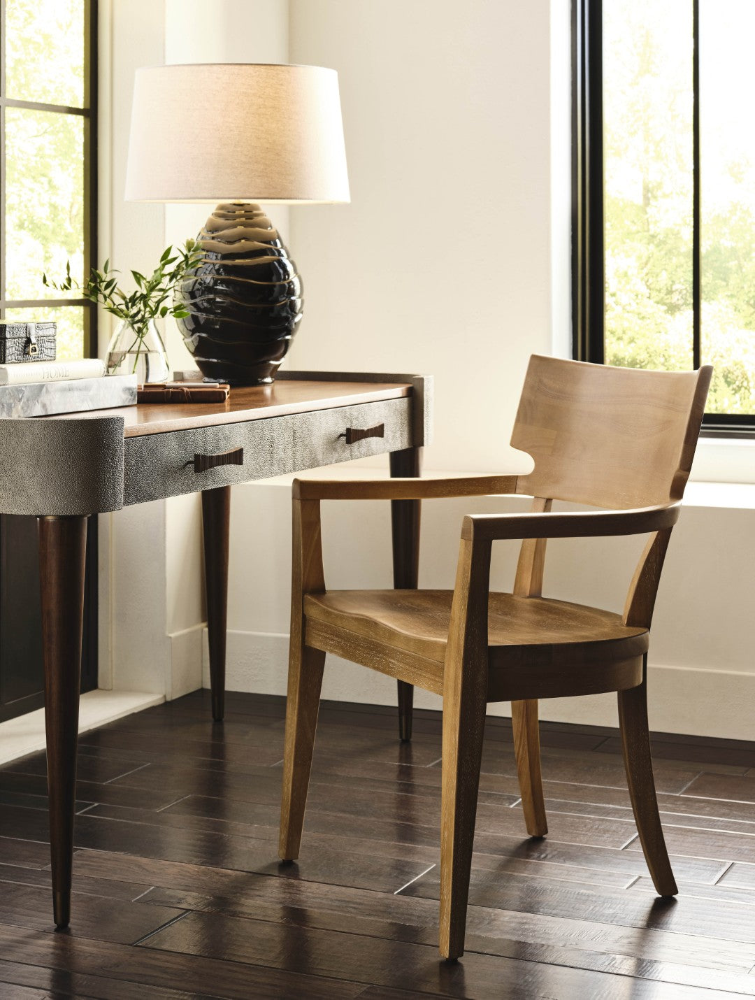 Elevate your workspace with a piece that blends Jazz Age glamour and modern function. This writing desk pairs refined materials and thoughtful details to create a focal point that is equally suited to productive work and stylish display.