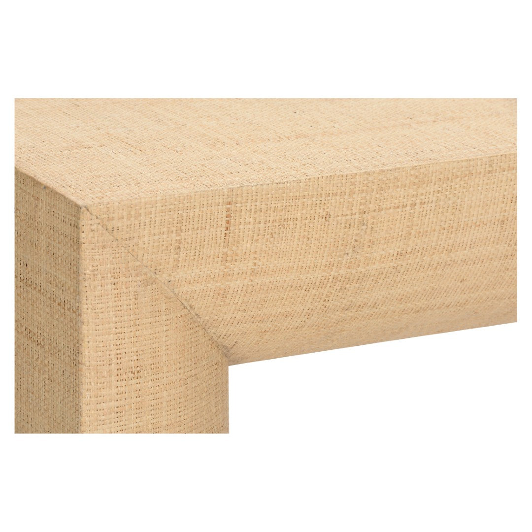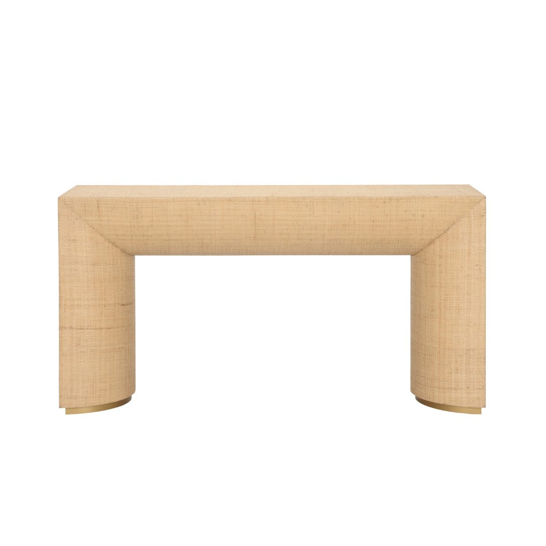 Elevate your entryway or behind-sofa display with the Kamo Console Table — a modern reinterpretation of the classic parsons silhouette. Its gently rounded legs, substantial top surface, and refined material pairing of natural raffia and brass give the piece a warm, sculptural presence that works equally well in coastal, bohemian, and contemporary interiors. Designed for style and function, it accommodates wide-shaded lamps and tucks stools or baskets beneath for added versatility.