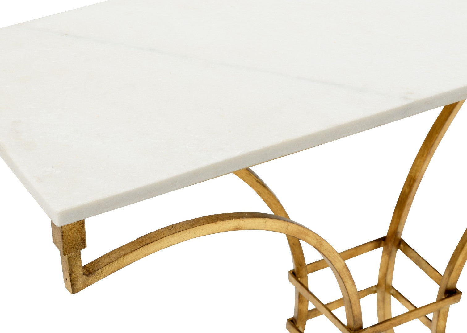 Elevate your entryway or living space with the Kara Console Table, a refined blend of vintage charm and modern elegance. Its antique gold leaf iron frame pairs beautifully with a natural white marble top, creating a versatile statement piece that suits classic and contemporary interiors alike. Thoughtfully proportioned, it adds surface and style without overwhelming smaller spaces.