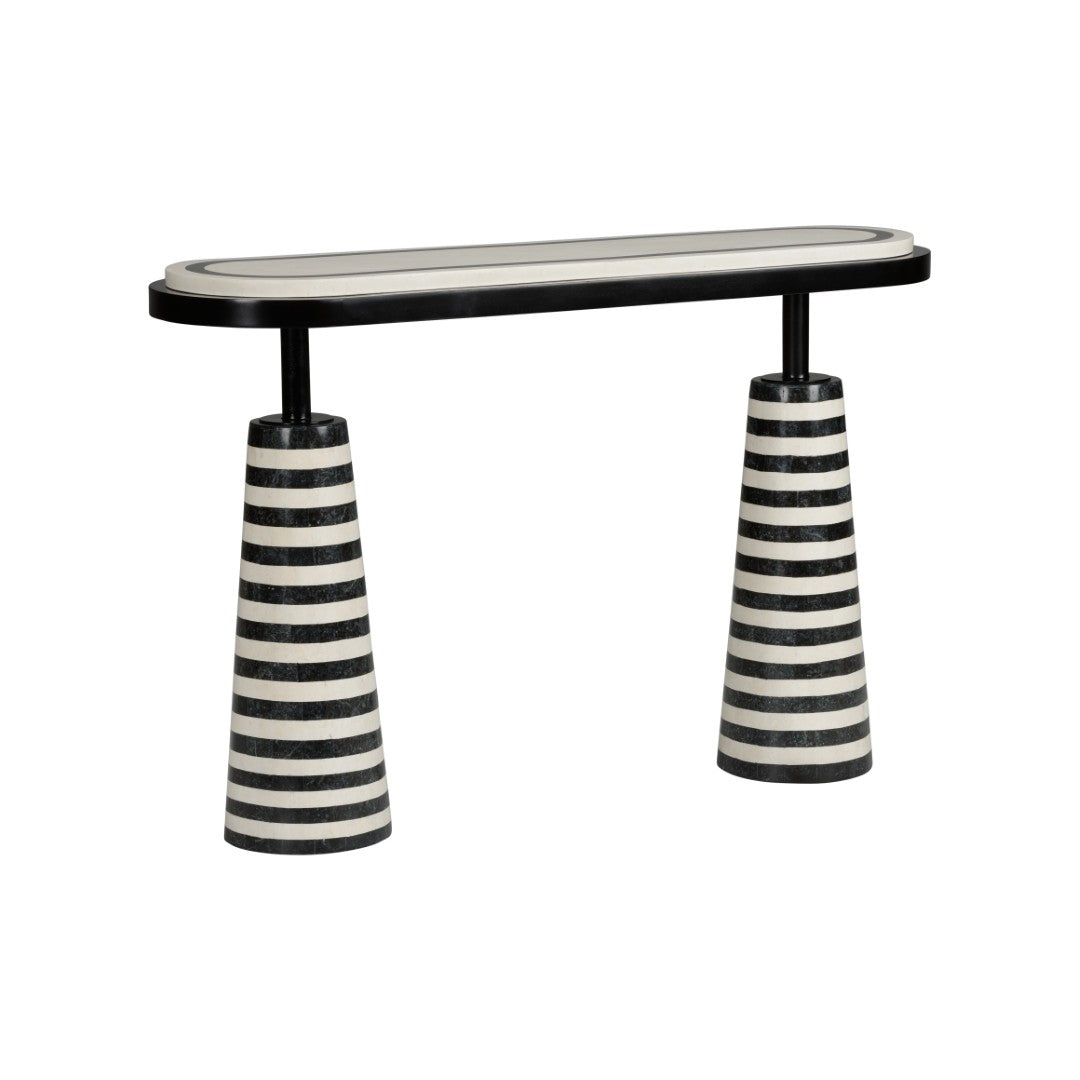 Elevate your entryway or living space with a bold, sculptural console that blends playful Memphis Group-inspired aesthetics with refined materials and solid construction. The contrasting layers of natural black and white stone create a striking visual rhythm while delivering reliable stability and practical surface space for décor, lighting, or daily essentials.