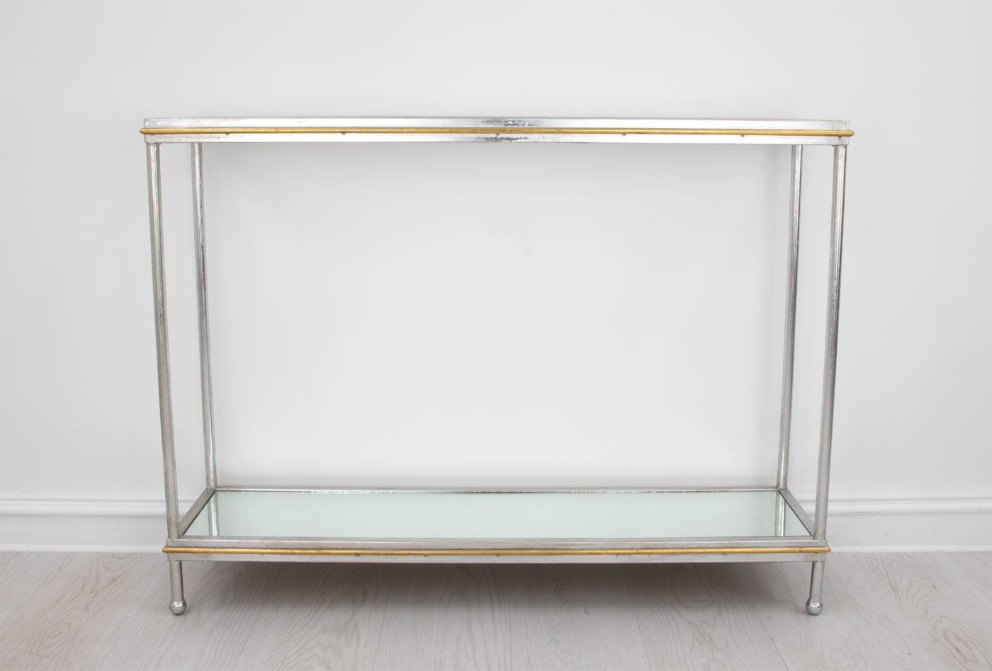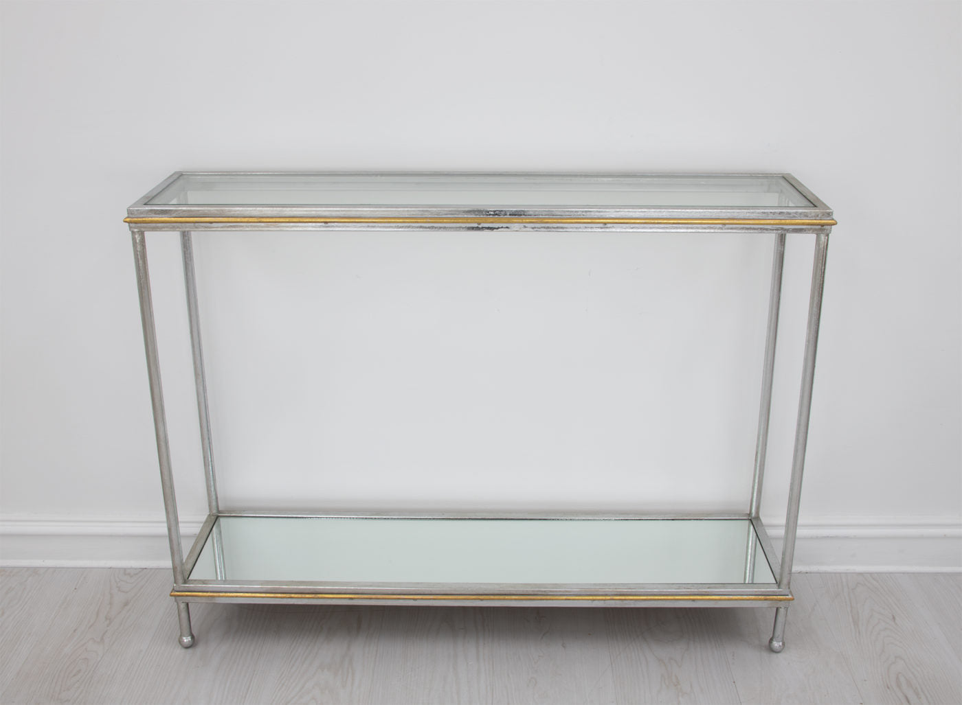 - Tempered glass top with mirror bottom