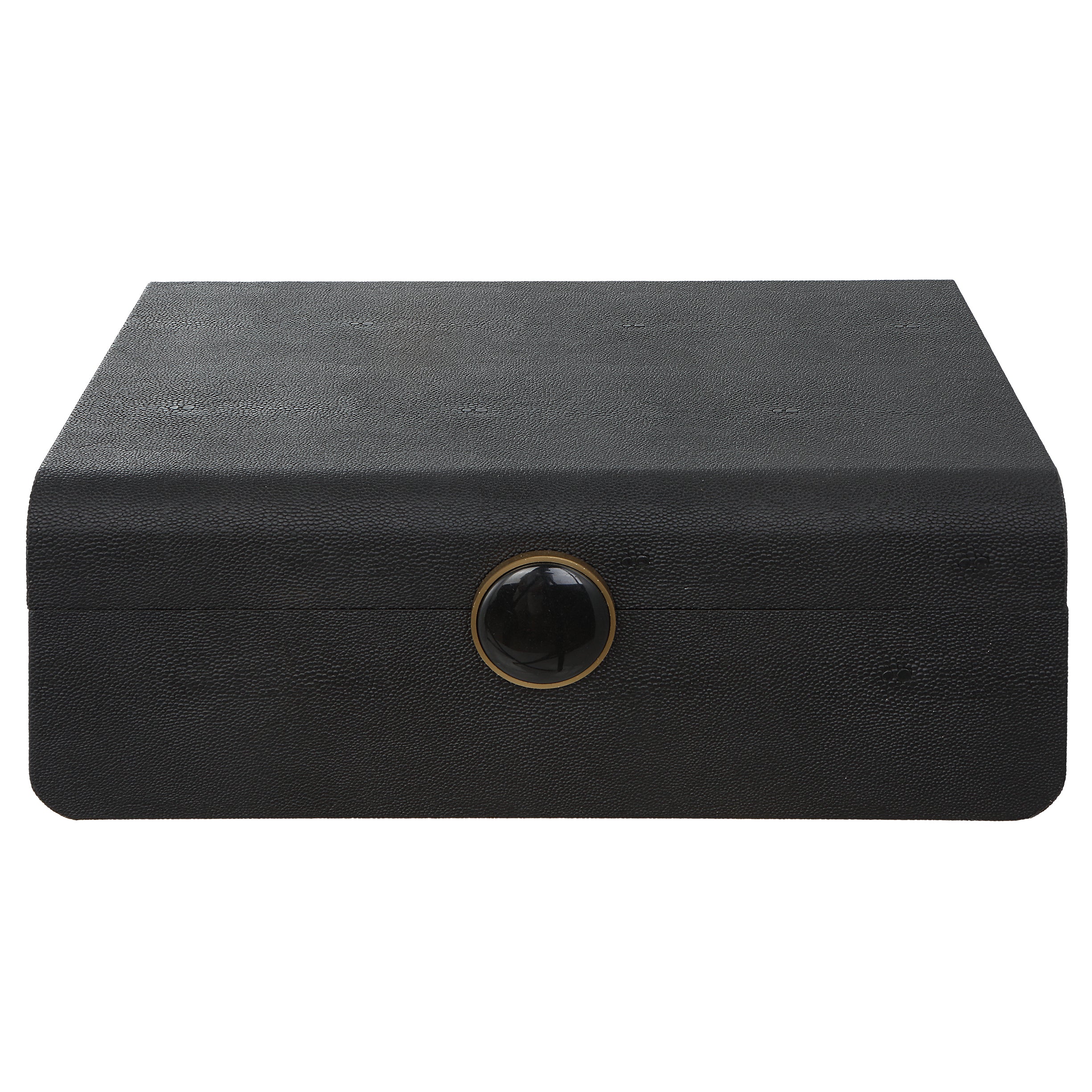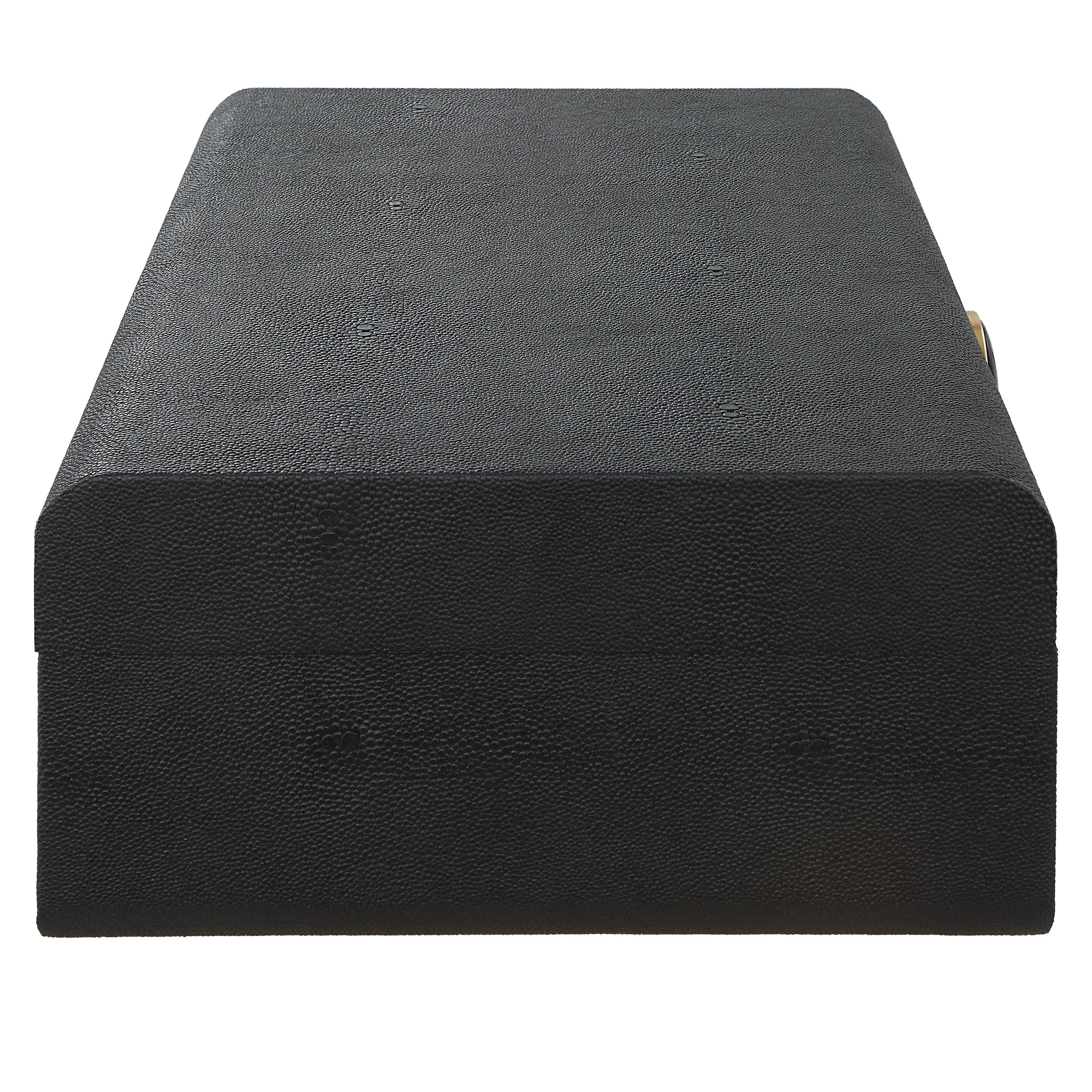 - Finish/Frame Description: Inspired By The Art Deco Era, This Decorative Box Showcases A Faux Black Shagreen Wrapped Exterior Accented By A Brushed Antique Brass And Black Enamel Closure. The Interior Is Finished In Matte Black.