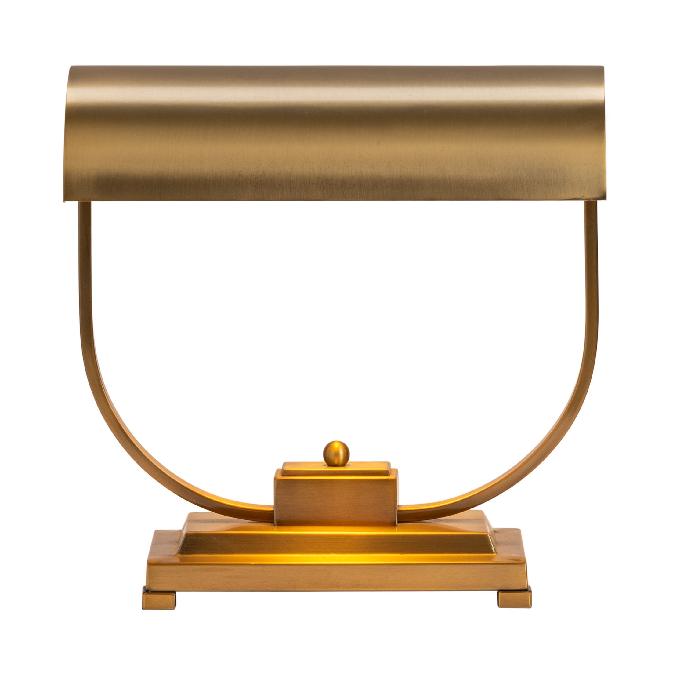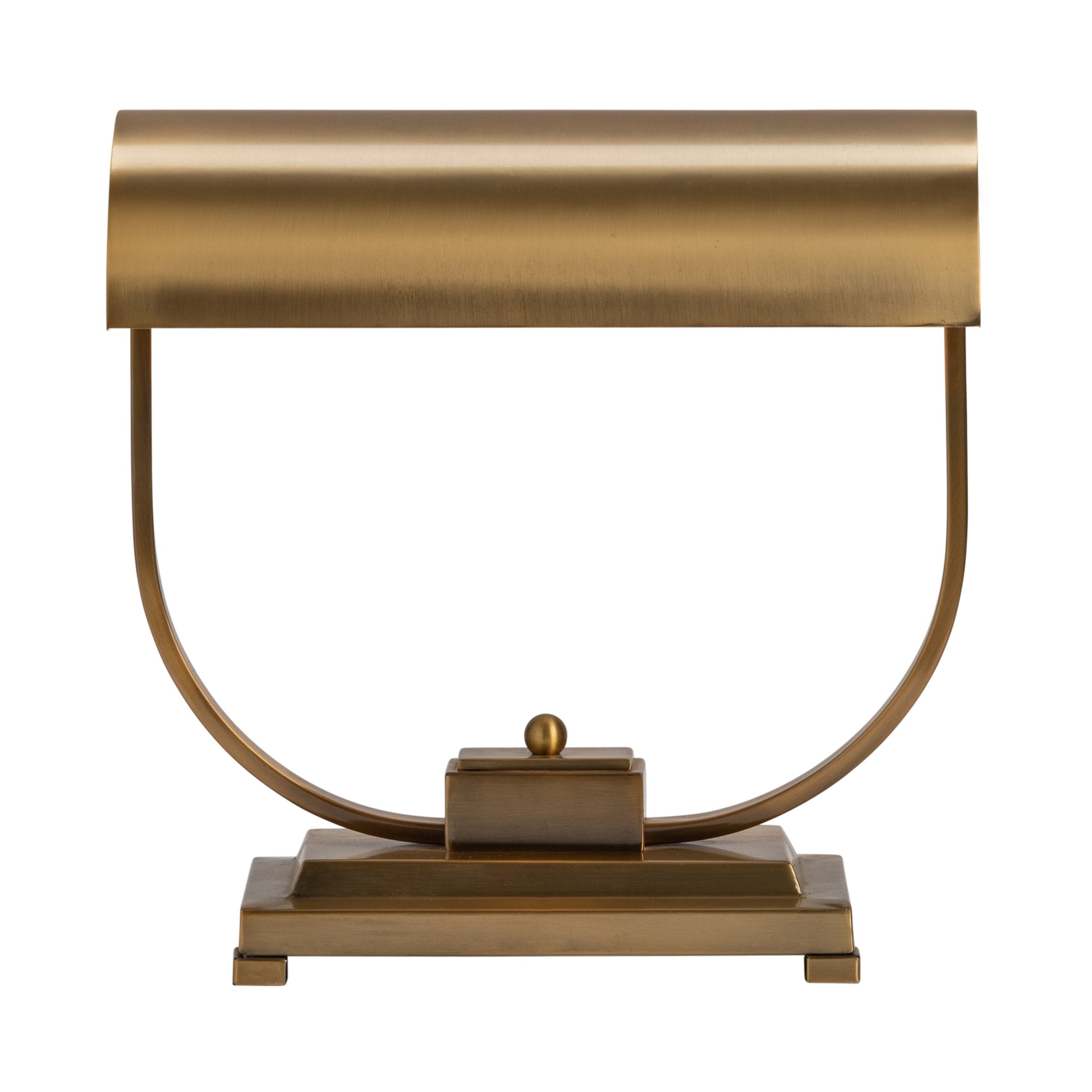 - Elegant U-shaped arms support a cylindrical shade for a minimalist aesthetic