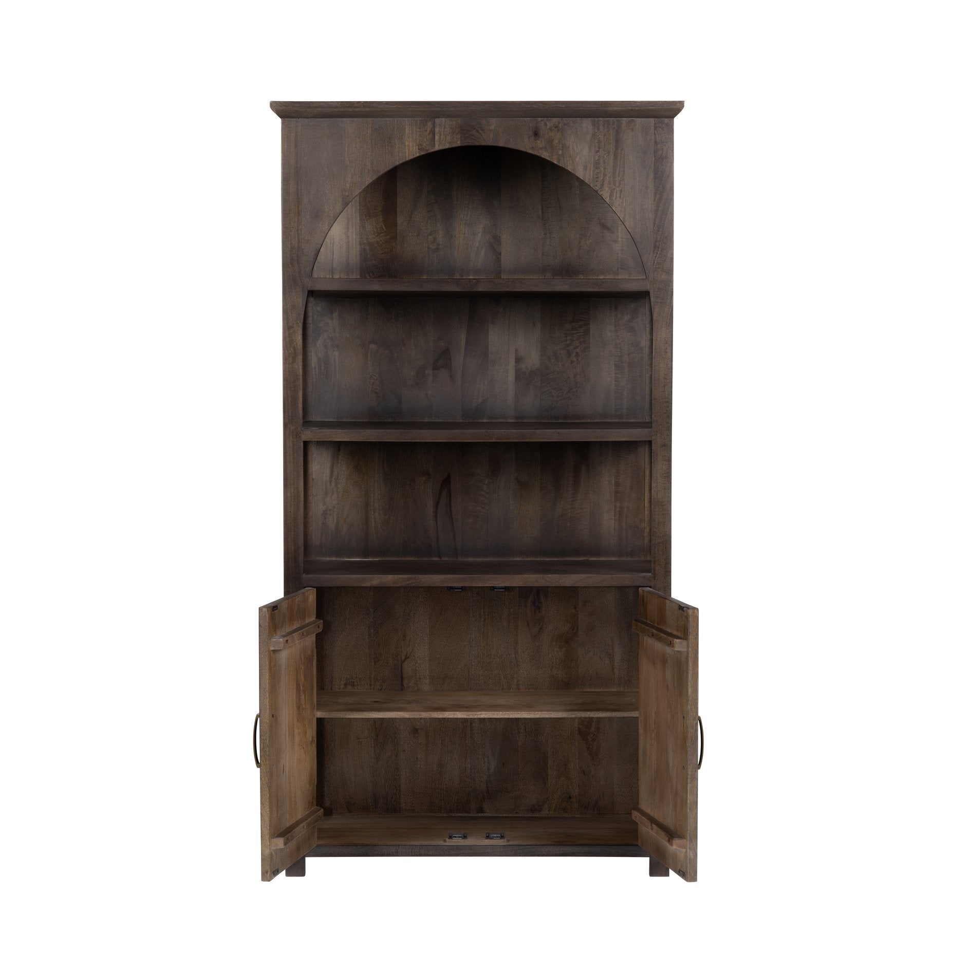 - Graceful arched open-shelf design adds a sophisticated architectural touch