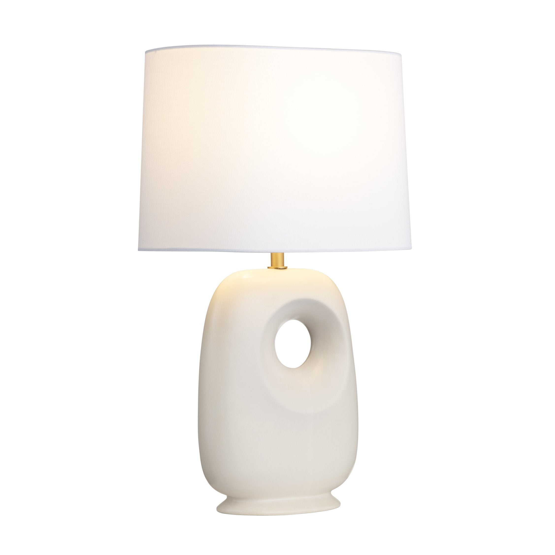 - White linen drum shade adds a clean, refined touch
