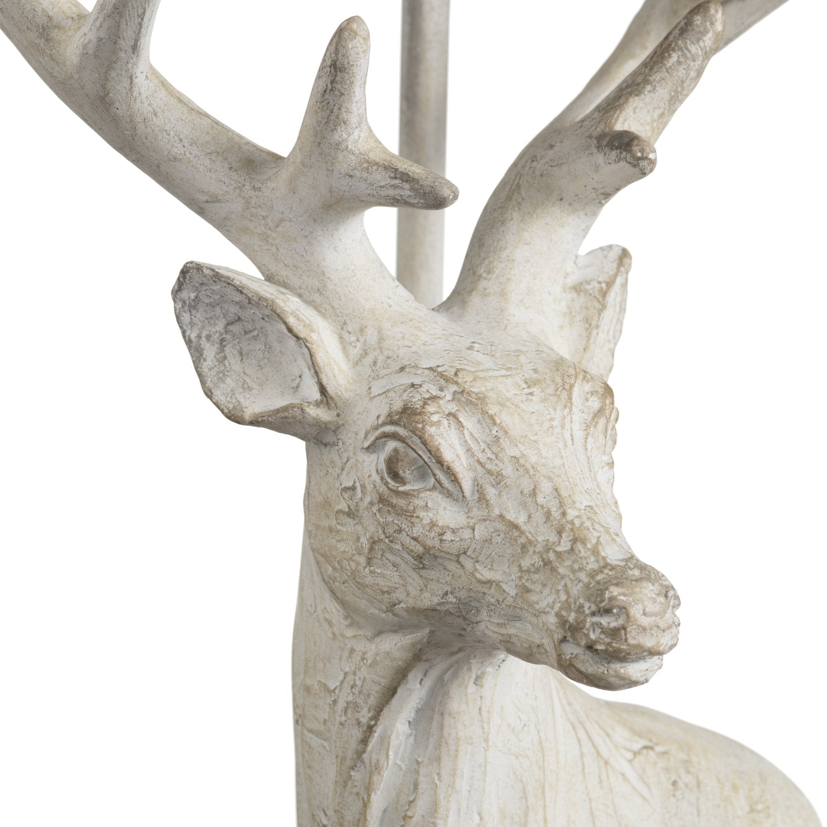 - Hand-finished cream resin body shaped into an elegant deer bust with intricate antler details