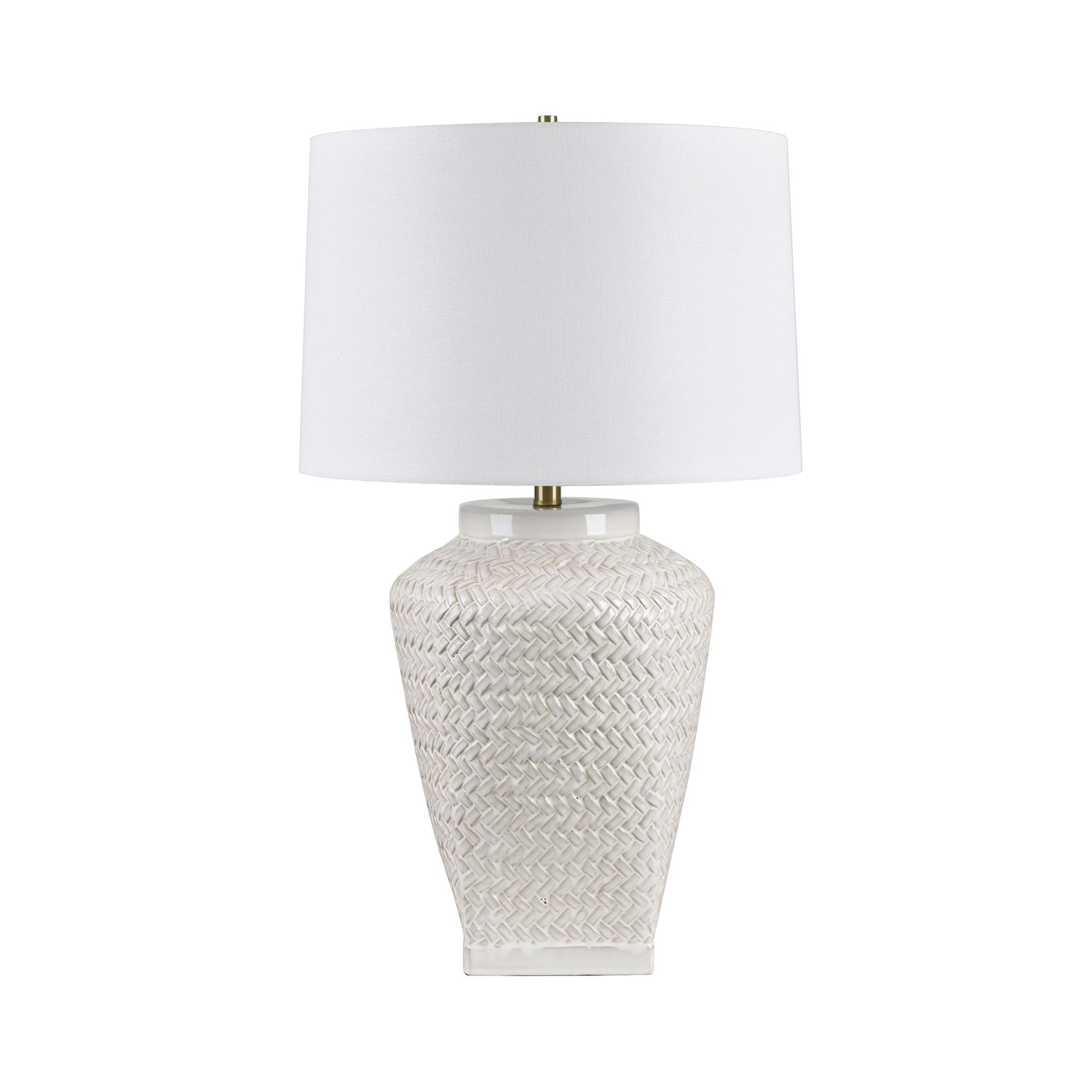 - Ceramic body with a sculpted woven wicker pattern for added depth and visual interest