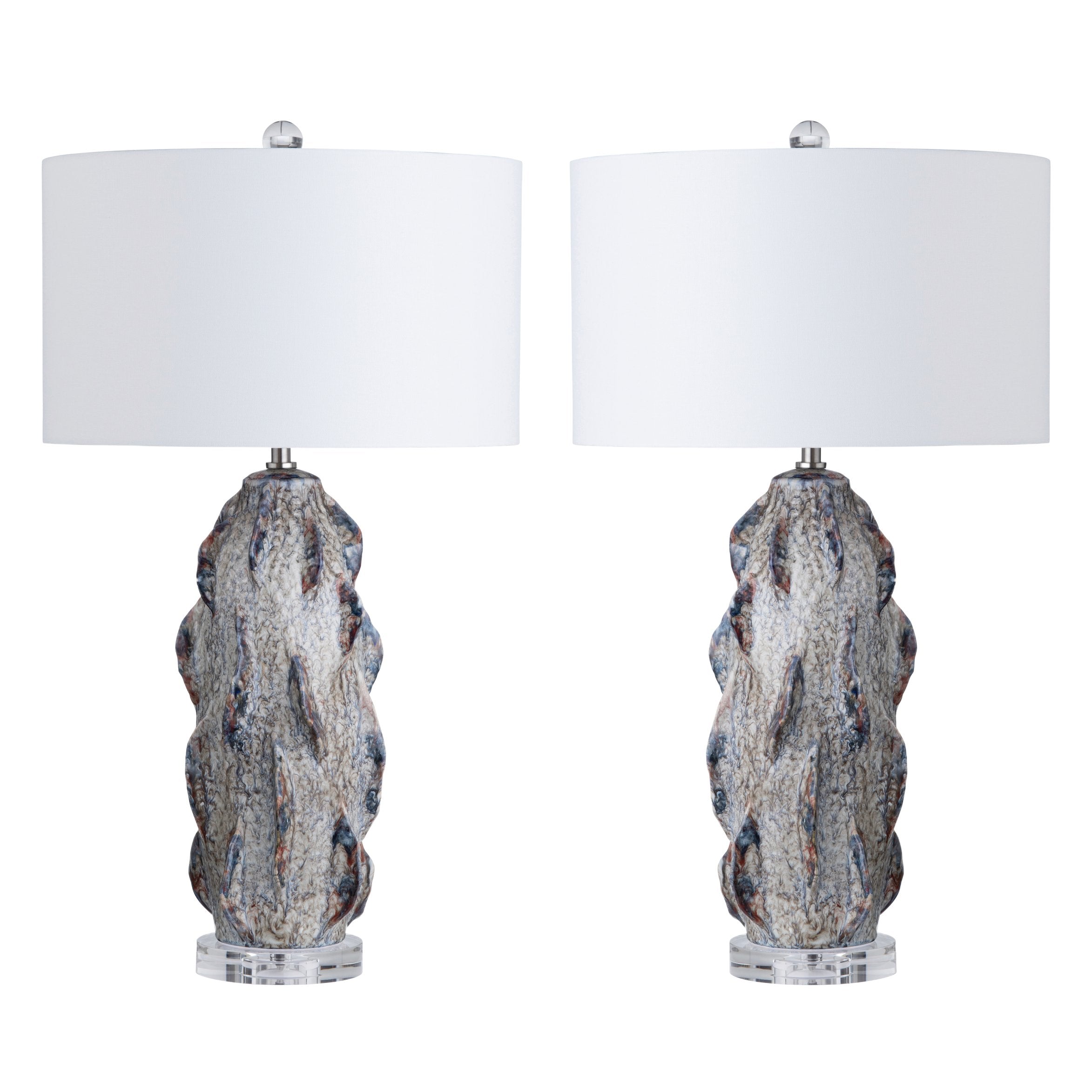 - Made from sculpted ceramic with rich marbled glaze in gray, rust, and navy tones