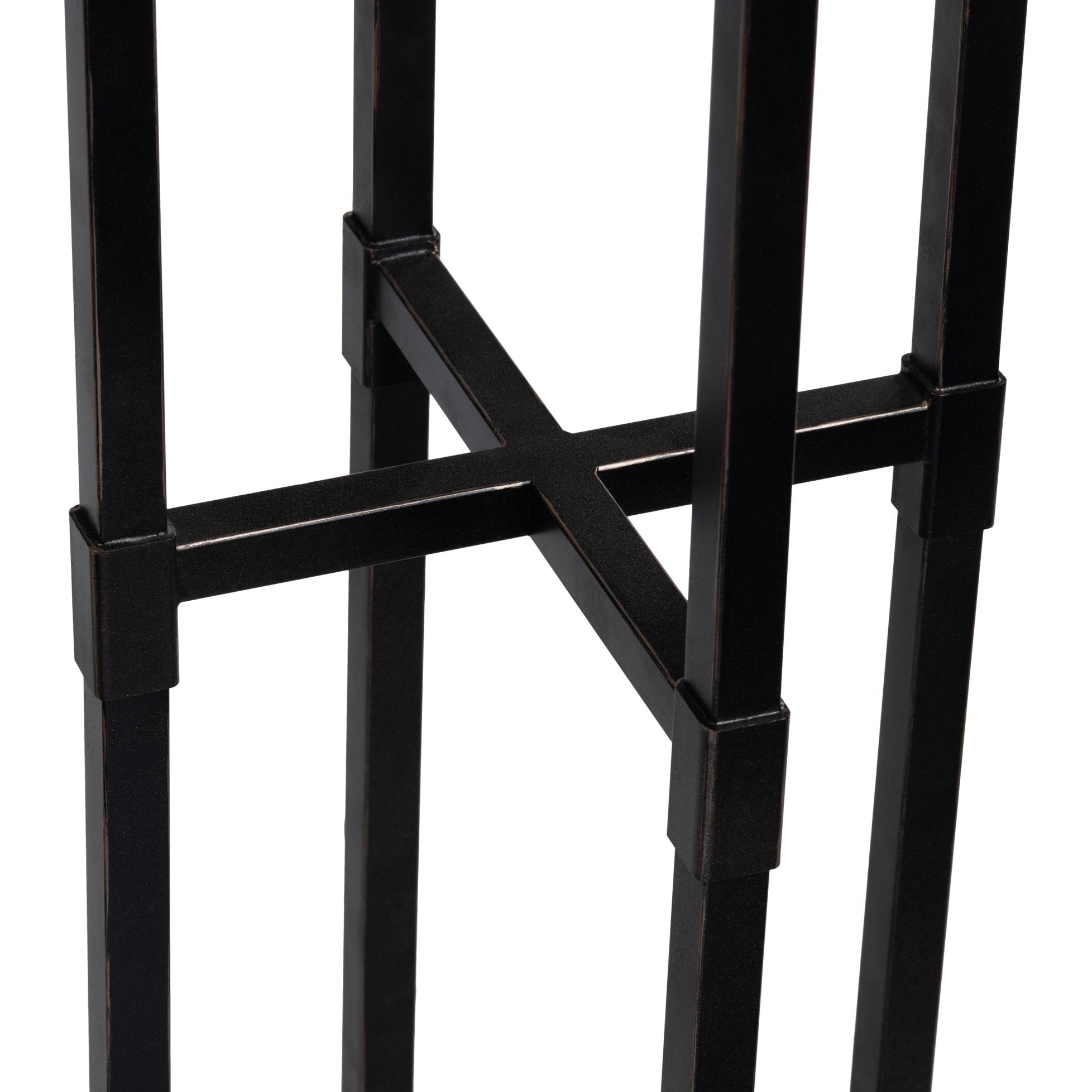 - Textured rusty iron finish with riveted folded metal corners