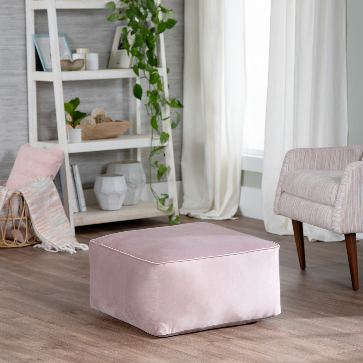 - Dimensions: EVFNR1230PK Cerra Pink Velvet Square Foot Stool Pouf - 24w x 24d x 12h