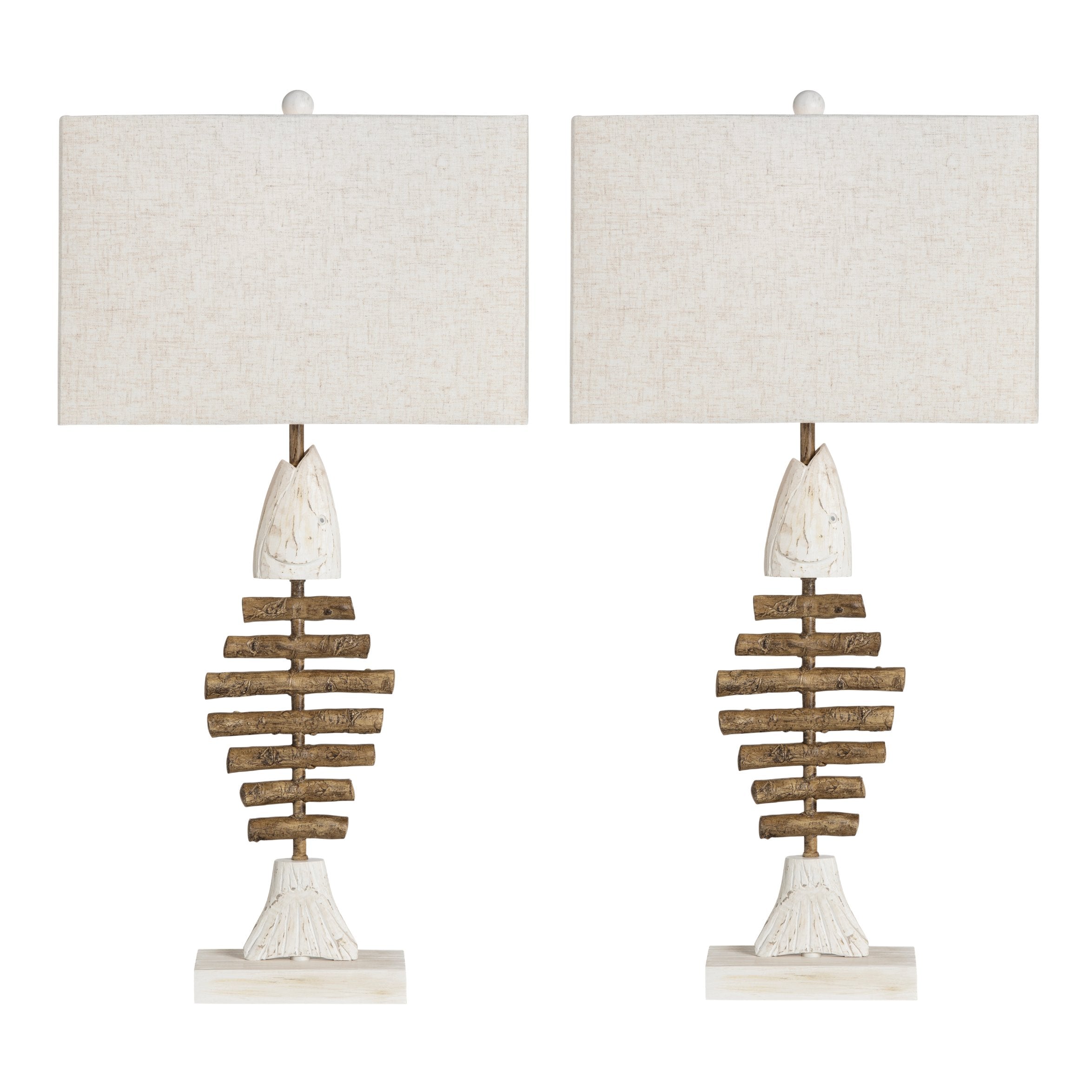 - Coastal-inspired table lamp with a fun, fish skeleton design