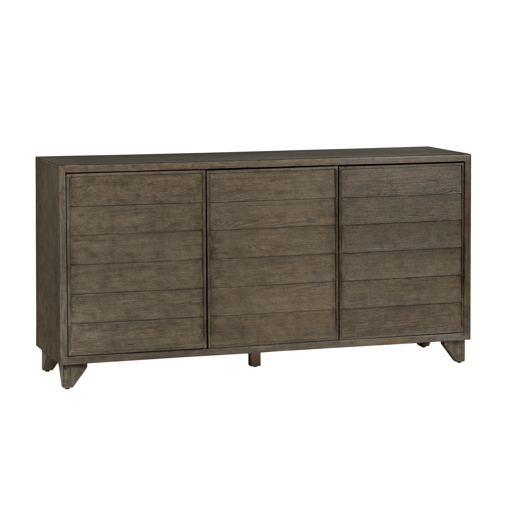- The media sideboard is finished in a warm brown tone with dark brown undertones for a natural and rustic appearance