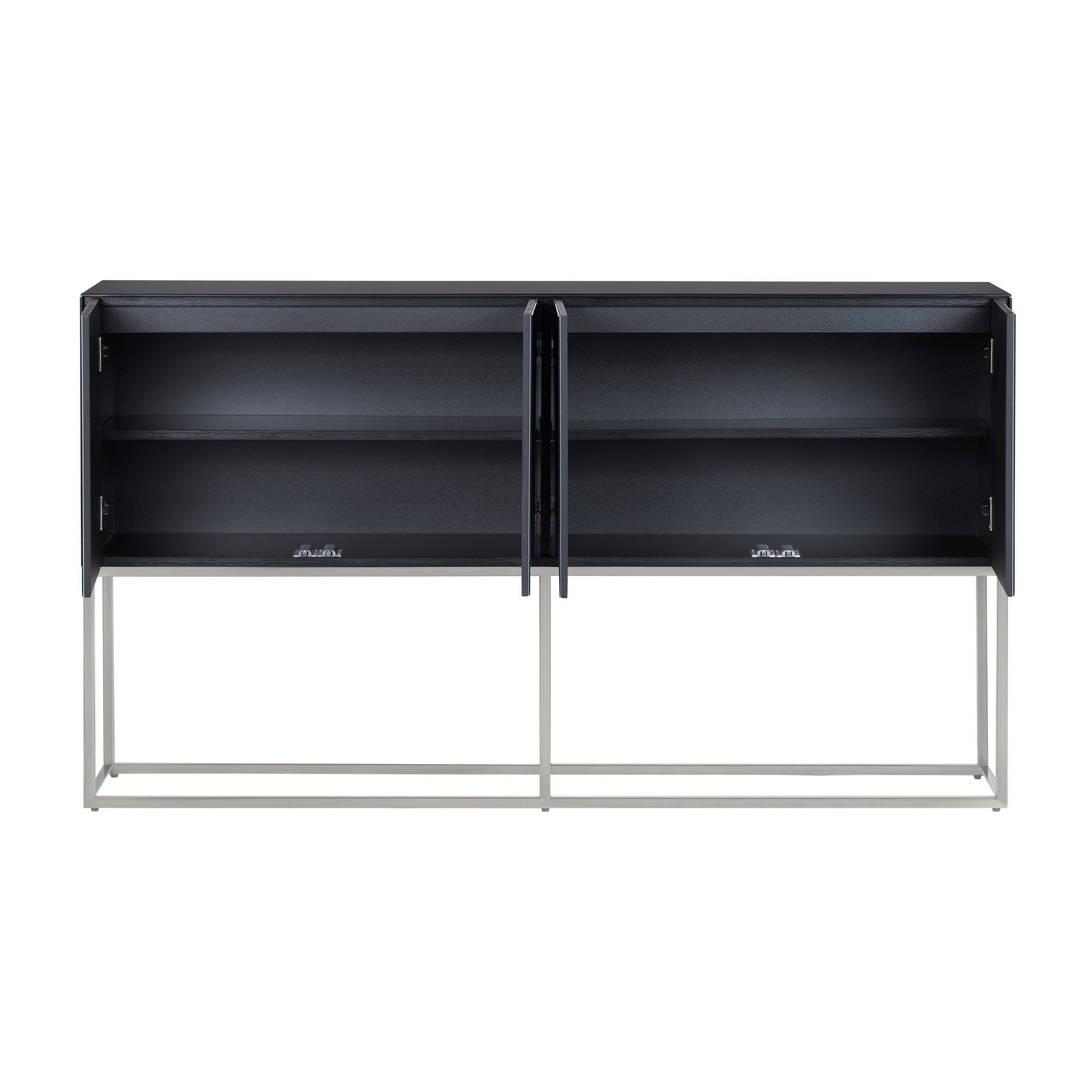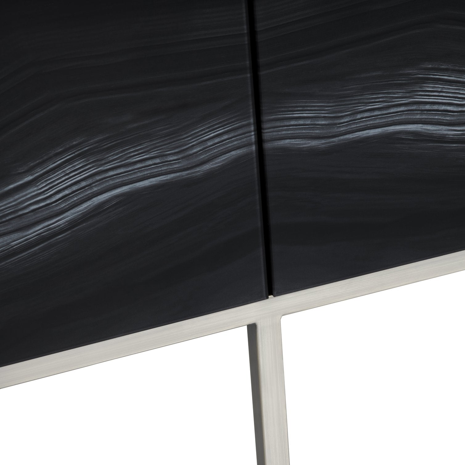 - Four doors with an elegant dark wave-like pattern add a modern, artistic touch