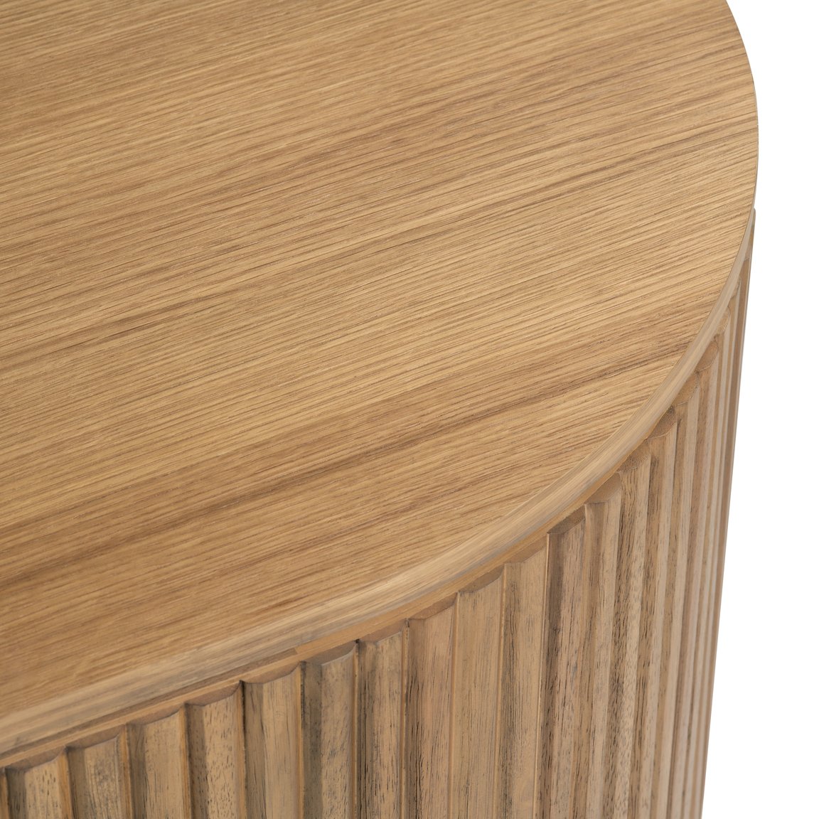 - Vertical slat detailing on the sides adds depth and texture, creating a bold yet refined statement