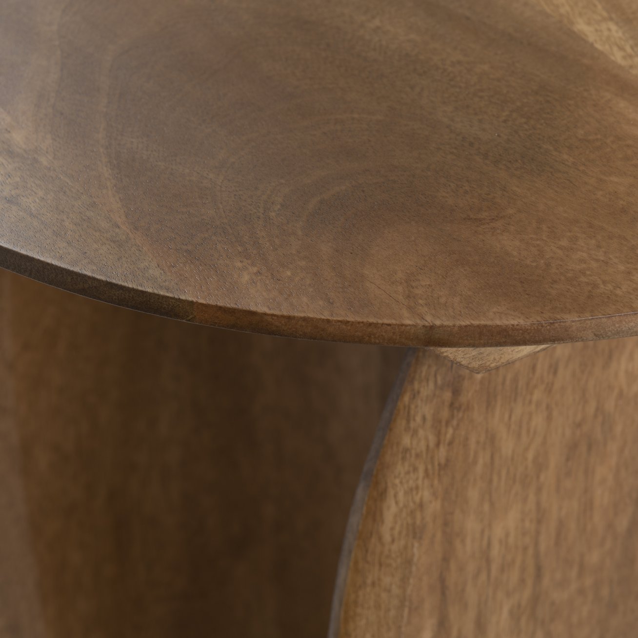 - Crafted from solid mango wood with a stained warm brown wood grain finish
