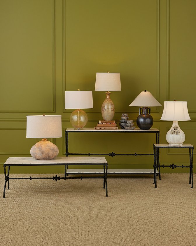 - Warranty: Currey & Company warrants its products for one year against defects in materials and workmanship.