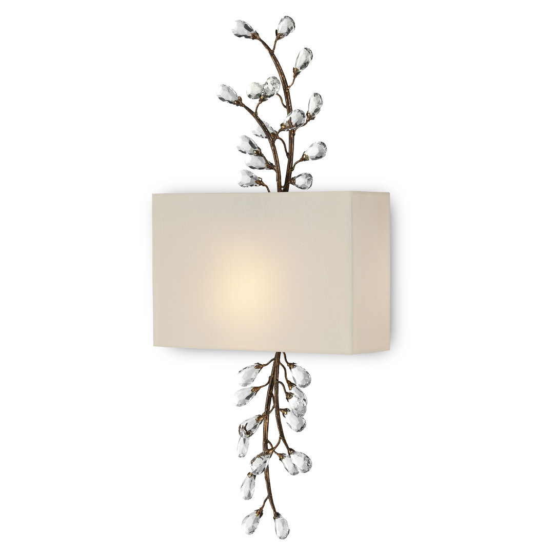 - Materials: Wrought Iron/Crystal/Fabric Shade