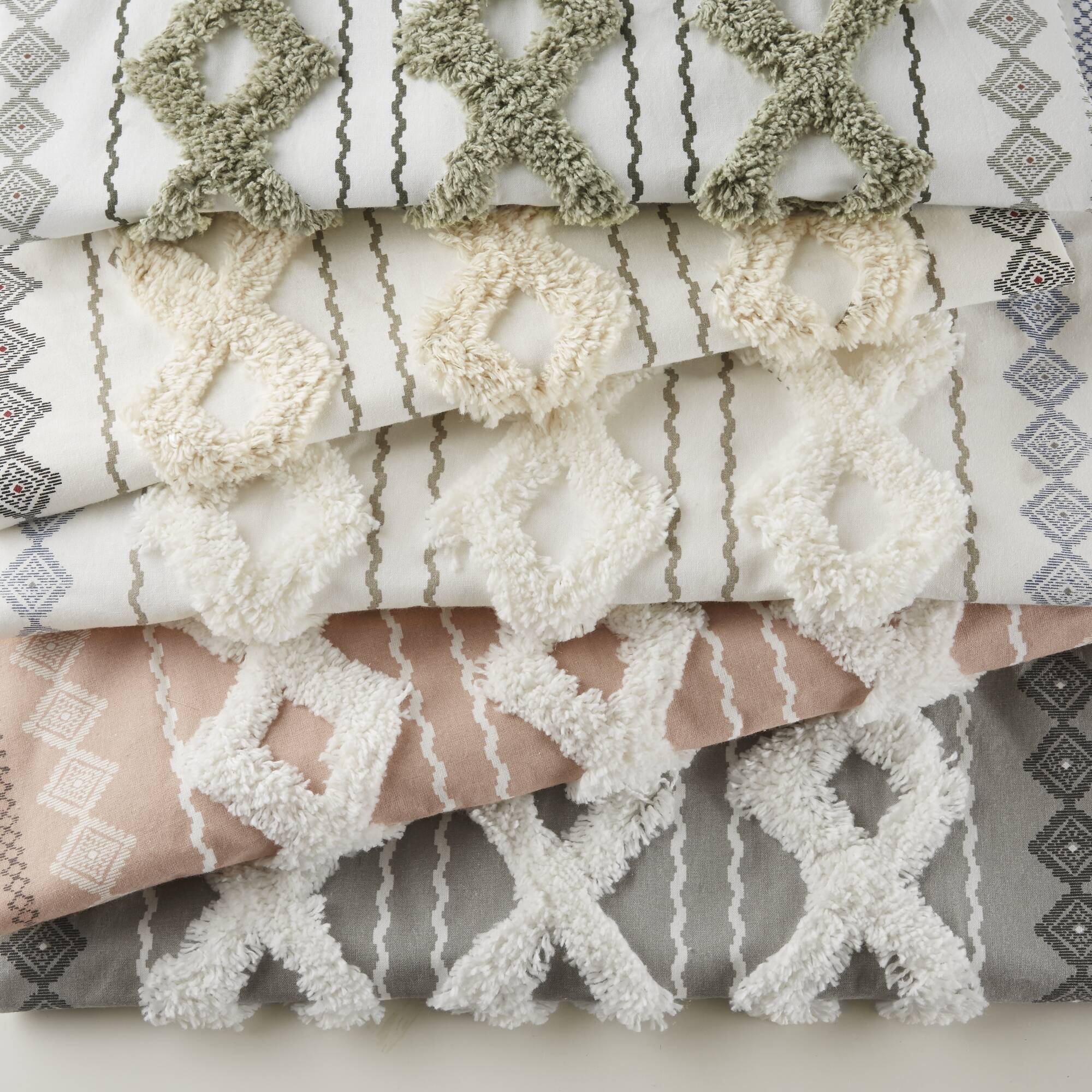 - Material: 100% cotton face printed and tufted with chenille stripes for a raised, textured look.
