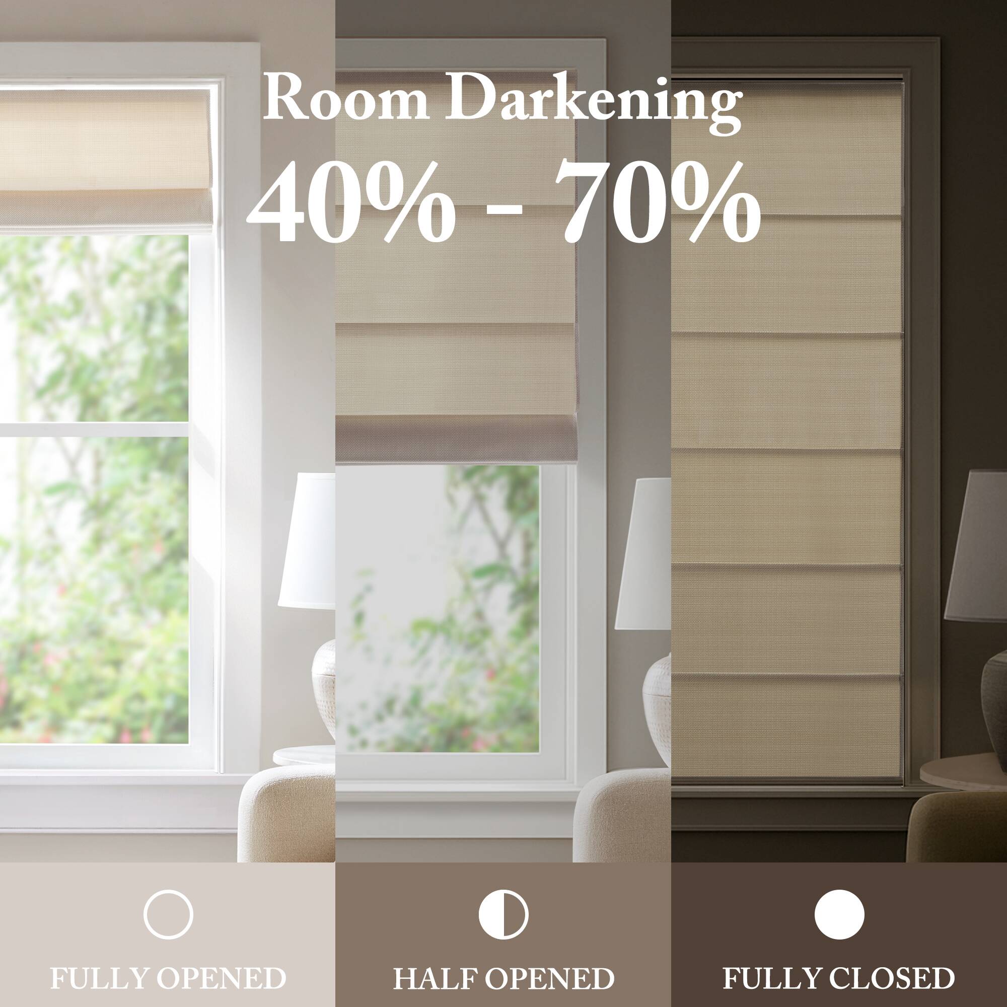 - Design: Cordless Roman style for a clean, tailored drape and safer operation