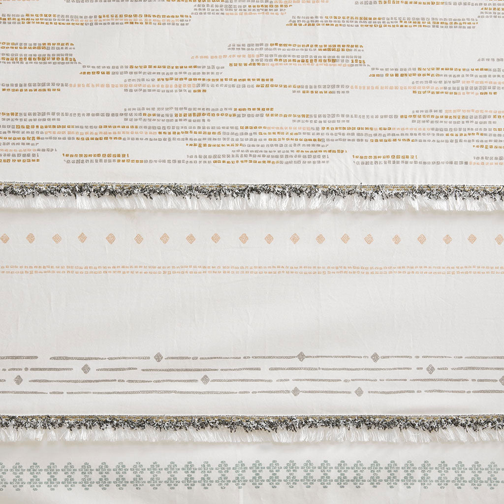 - Design: Off-white/gray printed stripes with tassel trim for a modern boho, shabby-chic aesthetic.