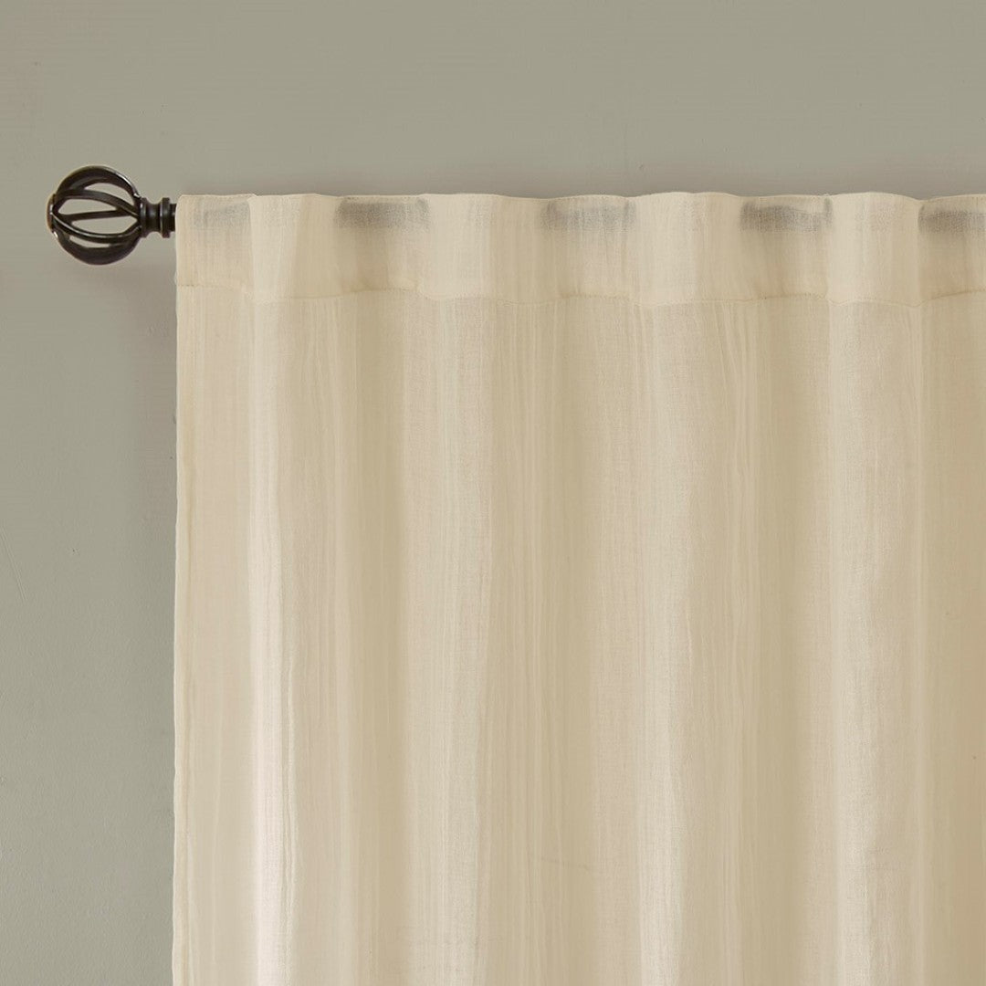 Refresh your windows with a soft, modern touch—this Solid Crushed Curtain Panel Pair brings light, texture, and effortless style to any room. Crafted from lightweight cream sheer fabric with crushed detailing, the panels gently filter sunlight while adding a subtle visual depth. Designed for easy hanging and versatile styling, they work well alone or layered with coordinating pieces for a tailored, finished look.