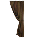 - Single panel curtain featuring decorative red and chocolate stripes