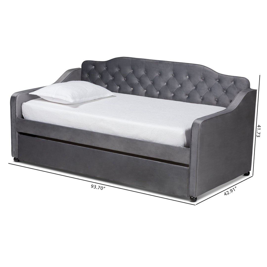 Lounge and host overnight guests with refined comfort: this elegant daybed combines traditional button-tufted styling with modern versatility. Upholstered in soft grey velvet and supported by a sturdy wooden frame, it functions as a stylish seating piece by day and a comfortable twin sleeping solution by night thanks to its convenient pull-out trundle.