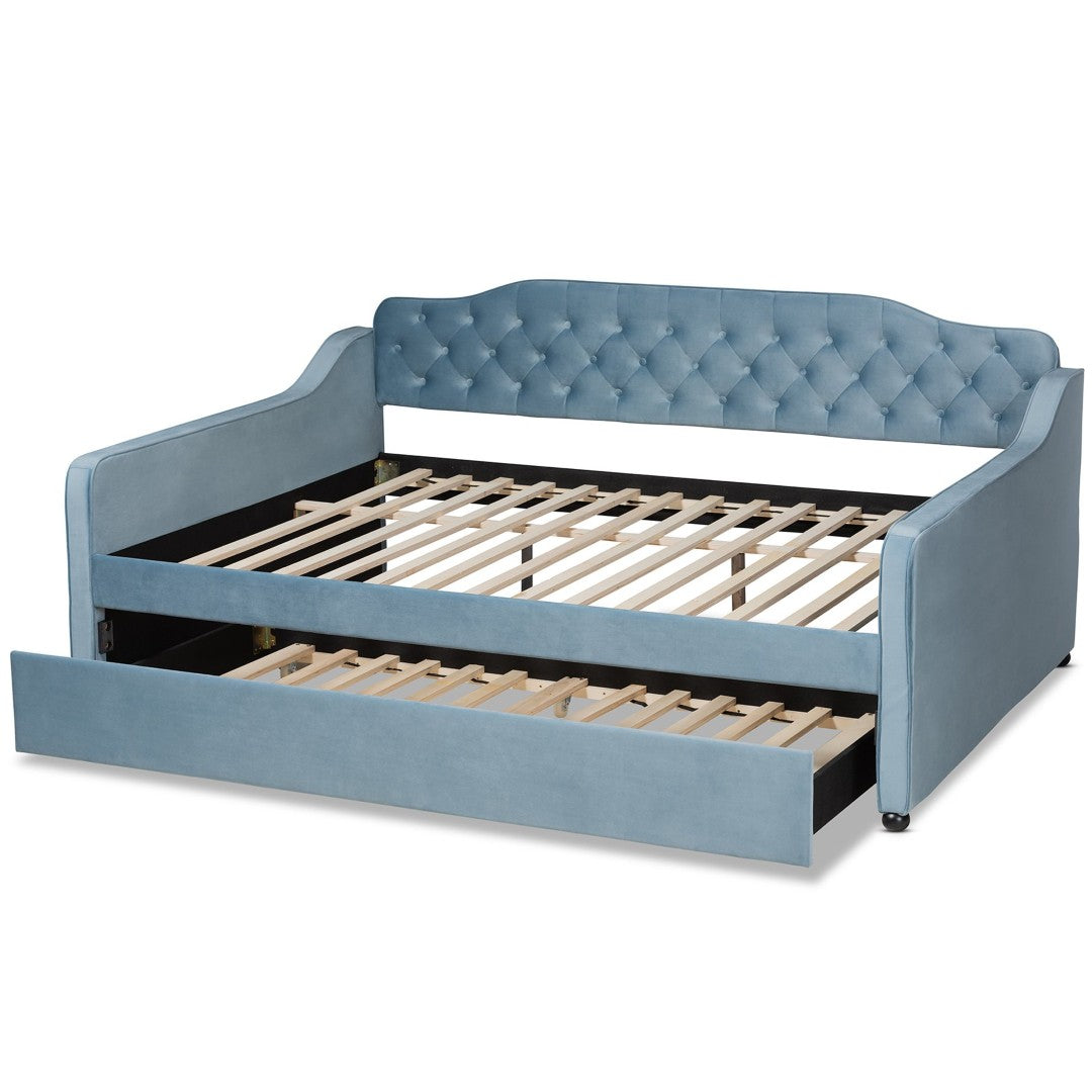 SKU:Freda-Light Blue Velvet-Daybed-F/T