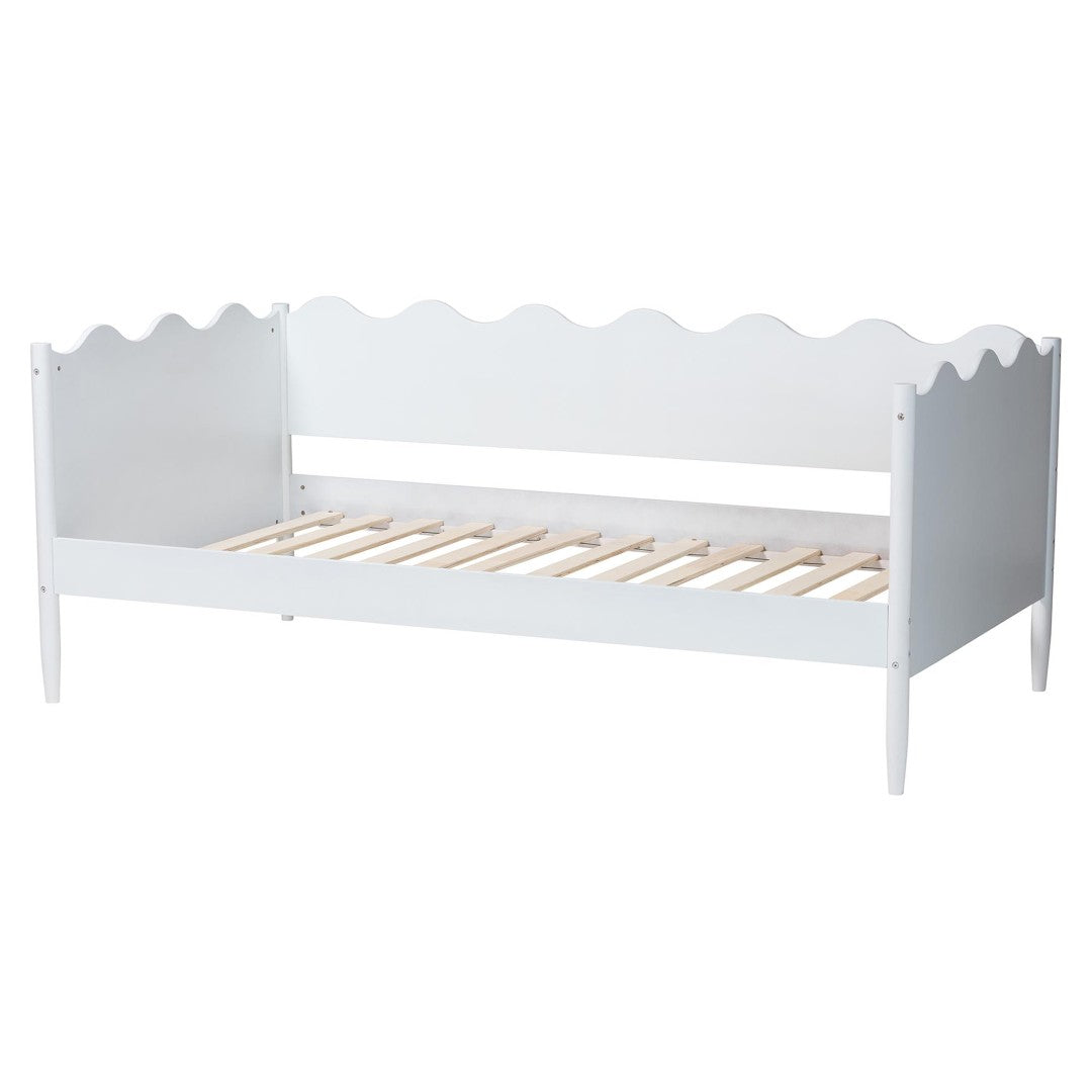 The Malaya daybed blends modern minimalism with subtle decorative flair to create a serene focal point for any bedroom or guest space. Crafted in Malaysia from durable rubberwood and engineered wood, its scalloped borders and rounded posts offer an elegant silhouette while practical features—like wood slats and tapered legs—ensure reliable everyday comfort and support. Ideal for lounging or sleeping, the Malaya is a refined, functional piece that complements contemporary interiors.