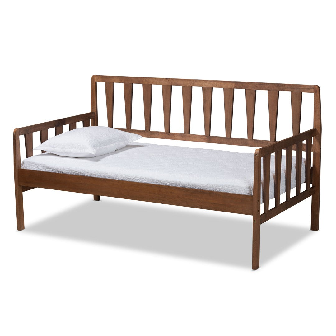 Bring versatile comfort and timeless style to a guestroom, child's room, or studio with this Midori twin daybed. Thoughtfully designed to function as both sofa and bed, it combines solid wood construction and a warm walnut brown finish with clean, contemporary lines—creating a cozy, airy focal point that supports everyday lounging, reading, and overnight guests.