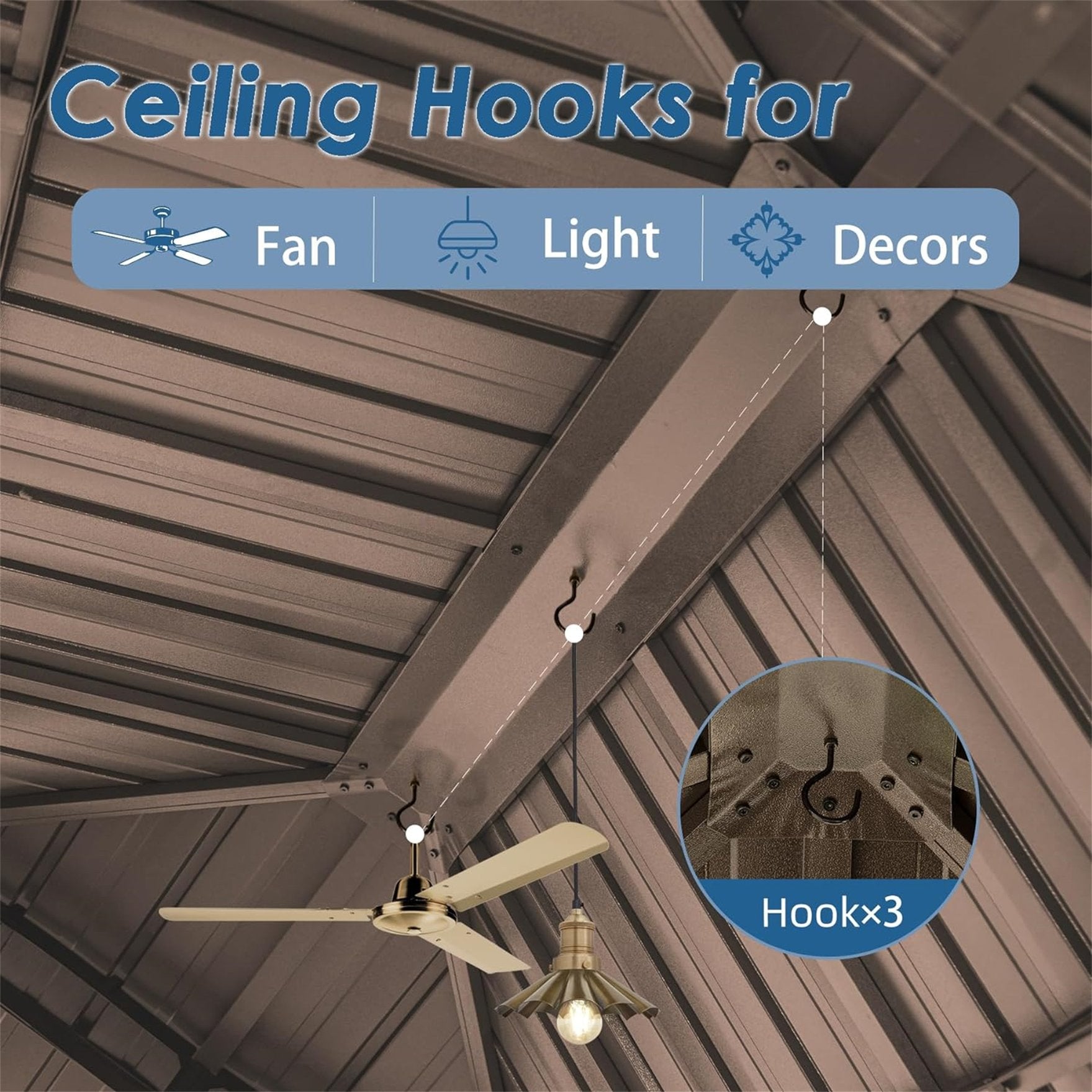 - Durable construction: Powder-coated aluminum frame with a galvanized steel double roof for long-lasting resistance to rust, corrosion, fading, and seasonal weather