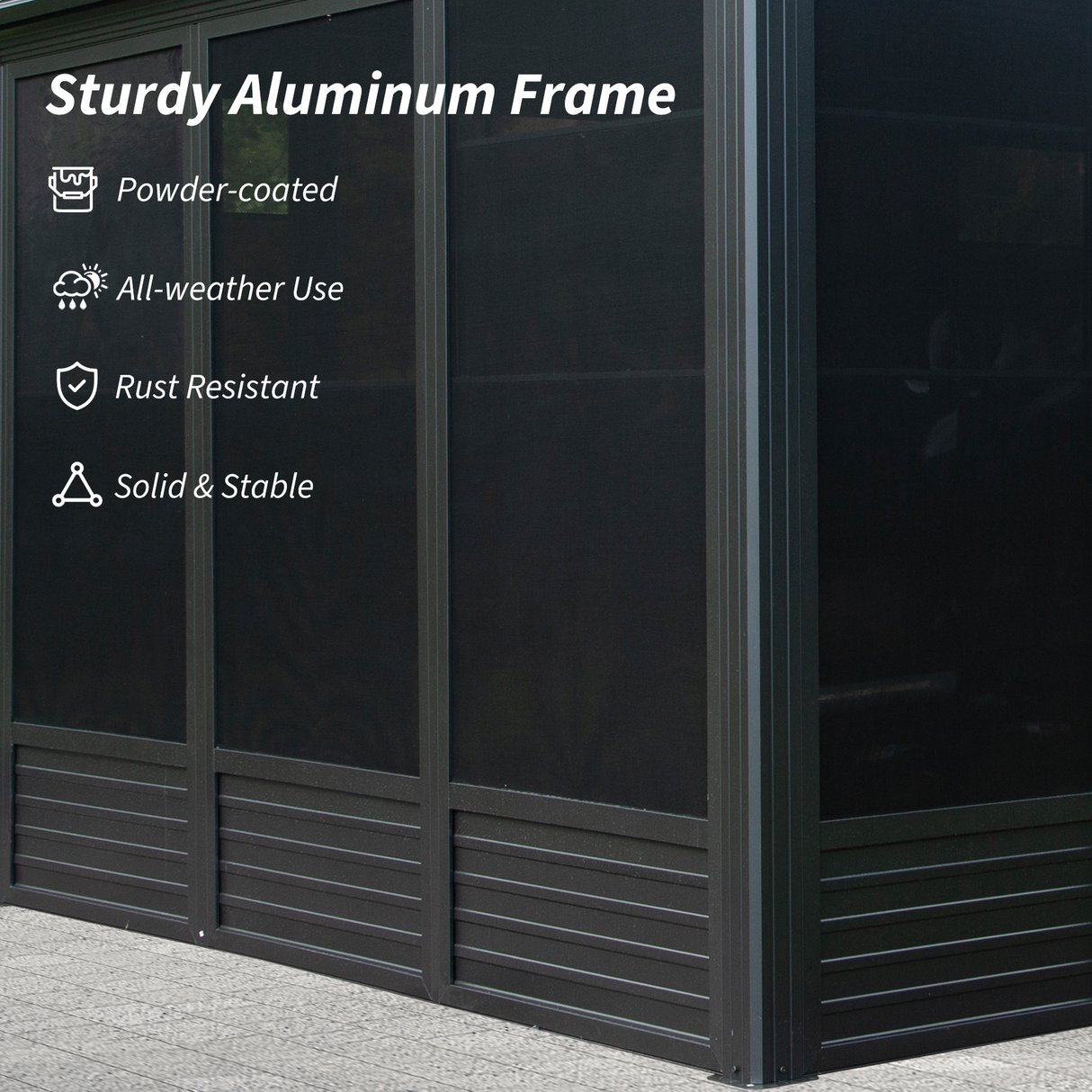 - Durable Aluminum Materials: Made from high-quality waterproof and UV-resistant aluminum, this sunroom gazebo ensures long-lasting use and remains sturdy and durable under various weather conditions.